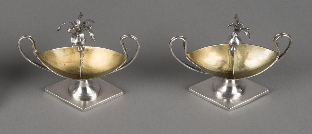 When it comes to removing tarnish on objects in the Museum’s collection, there are several options. Our favorite method is to polish silver with a paste we make ourselves by mixing a synthetically prepared calcium carbonate that is purer and more uniform than natural calcium carbonate with deionized water. We work in small areas with a cotton swab dipped in this paste to gradually remove the tarnish and bring back the shine. Calcium carbonate is a gentle abrasive compared to many commercial polishing products, which are often much harsher and leave scratch patterns on the surface. Once the silver is polished, thoroughly rinsed, and dried, we apply a protective lacquer coating to prevent further tarnishing and the need for frequent polishing. Every time a piece gets polished, a tiny amount of silver is removed in the process—therefore, this protective coating helps us avoid polishing more than we have to!