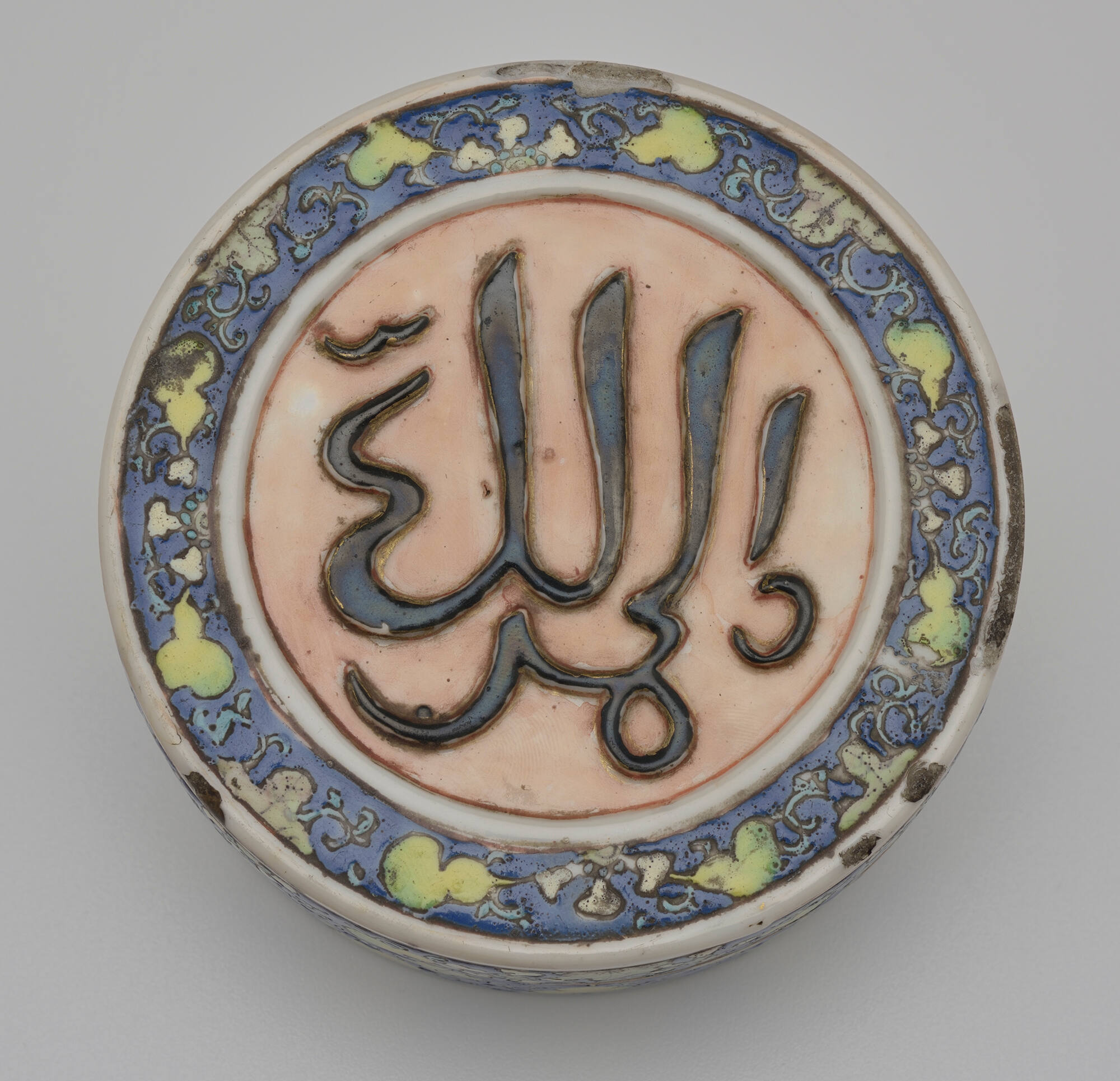 Probably purchased by Isabella Stewart Gardner during her travels through Asia in 1883-84, these three Islamic vessels were most likely made as ceremonial vessels for a mosque.  Although probably created as a set in the 19th century, painted on the base of the incense burner is the stamp of Ta Ming Hsüan-tê nien chih, an Emperor of the Ming Dynasty.  During the 19th century, it was not uncommon for Chinese ceramicists to include false dates from the Ming Dynasty on porcelain for foreign buyers.