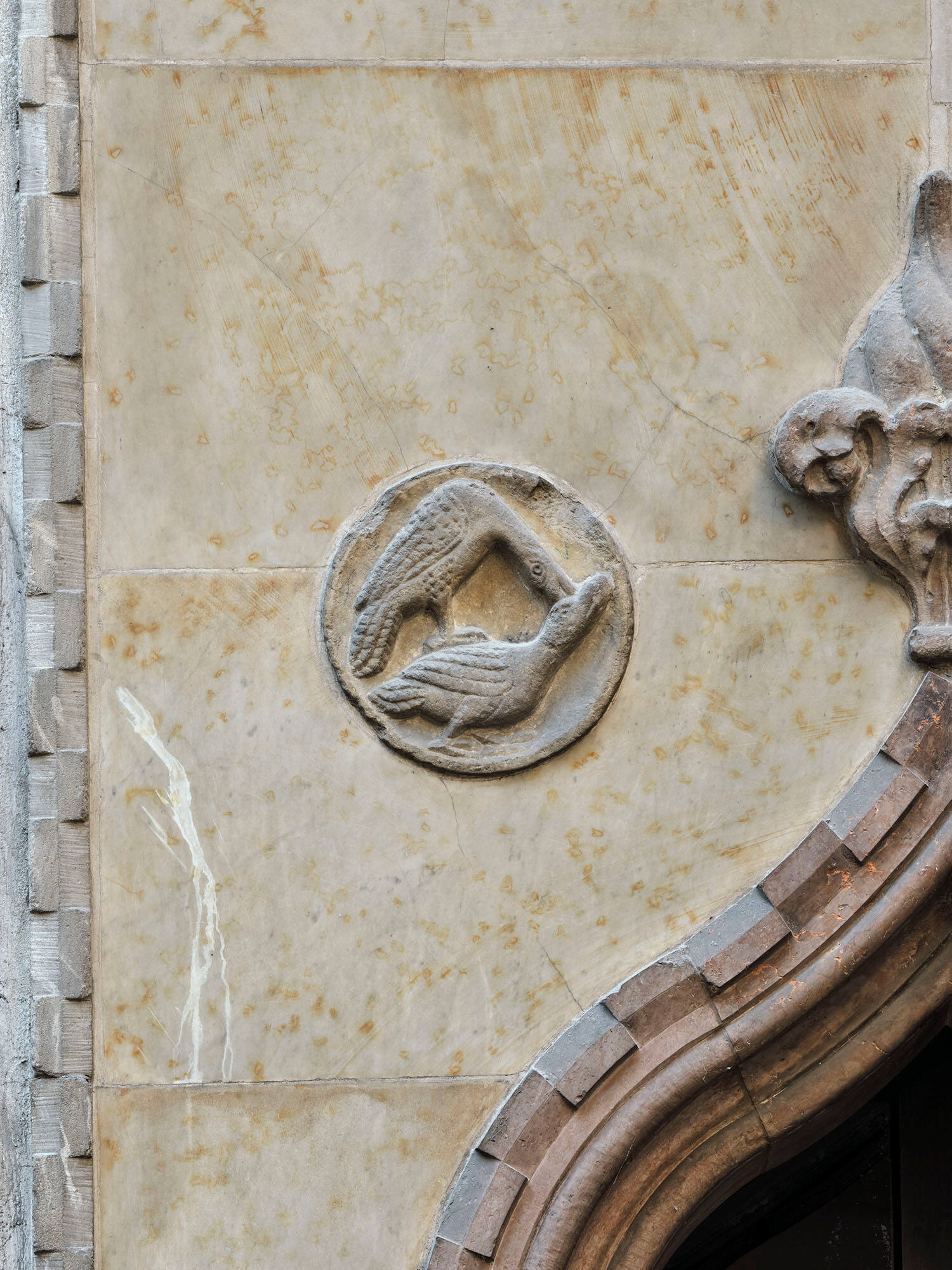 In September of 1897, Isabella Stewart Gardner purchased many pieces of Venetian relief sculpture and architectural elements in anticipation of the creation of her museum. These purchases included 35 marble medallions or 'paterae,' and in 1899 she purchased three more medallions for a total of 38. These medallions were all purchased in Venice, the majority coming from the dealers Francesco Dorigo and Moisé dalla Torre and one more from the art dealer Antonio Marcato. The 1899 purchases were also made in Venice, an additional patera coming from Francesco Dorigo and two from the art dealer and restorer Dino Barozzi. Gardner installed at least one of her medallions in the Conservatory at Green Hill, her residence in Brookline, Massachusetts, by about 1900 before the group was reinstalled in the Courtyard of Fenway Court.
