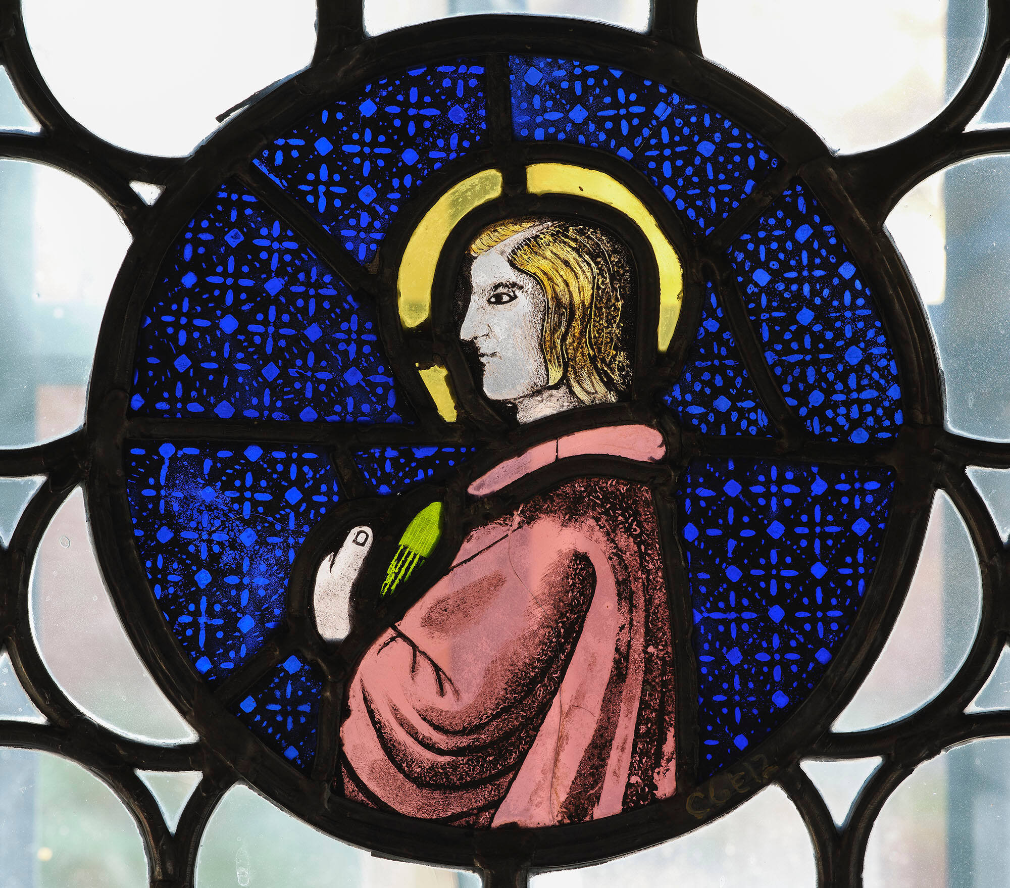 Purchased by Isabella Stewart Gardner from the art dealer A. Pickert, Nuremberg, on 11 August 1875 (as dated about 1480). It was valued at 30 florins, but this and two other small windows (C6e4 and C6e7) were included free of charge in the purchase of 8 larger windows now in the Gothic Room and Long Gallery Chapel that totaled 3400 florins.