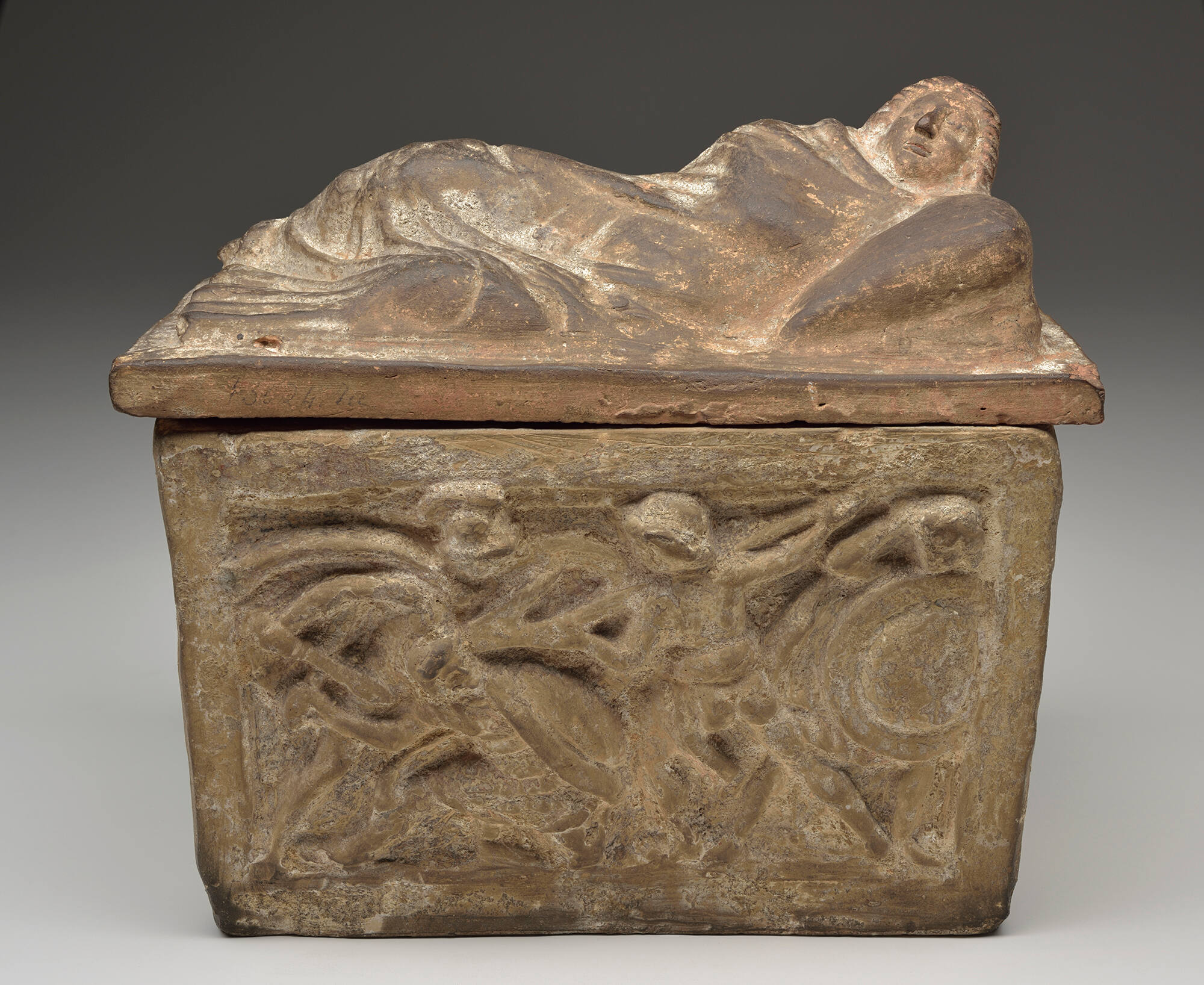 Discovered at the archaeological site of Chiusi, in present day Tuscany, it would have originally been painted and inscribed with the name of the deceased. Although the inscription is now lost, the lid offers some insight into the identity of the deceased, as it was common practice to include their likeness reclining on the lid.