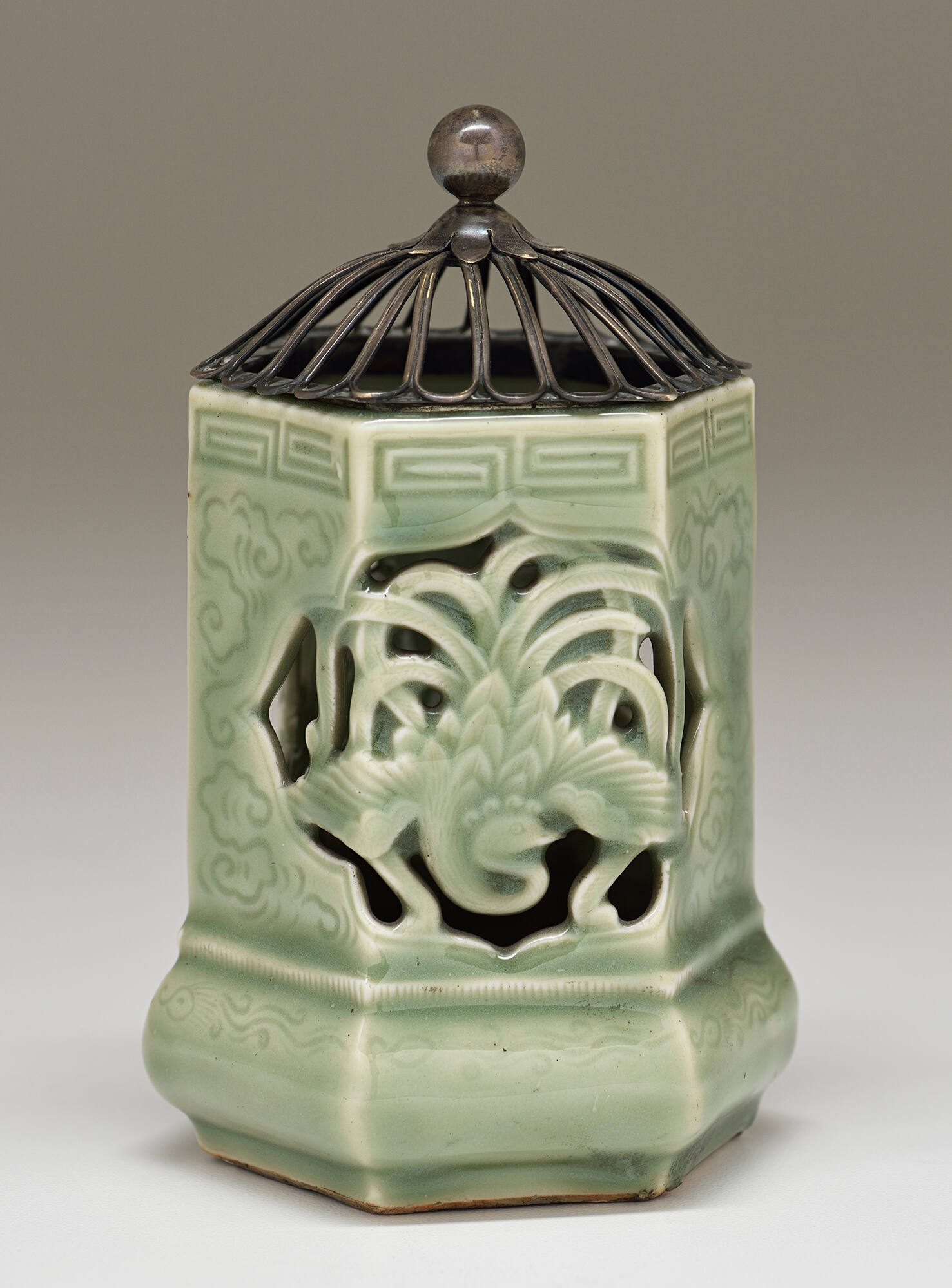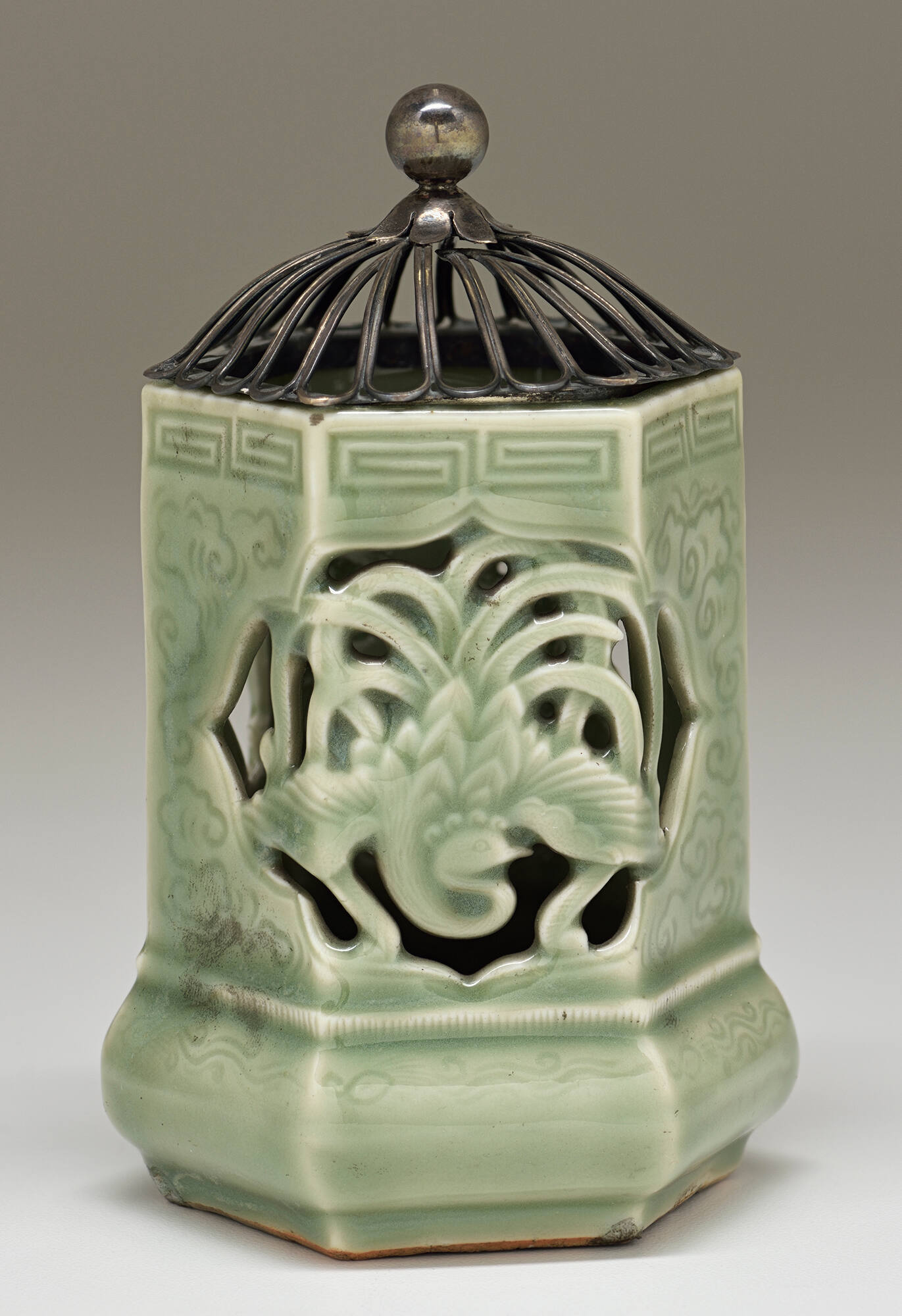 Glazed porcelain and silver