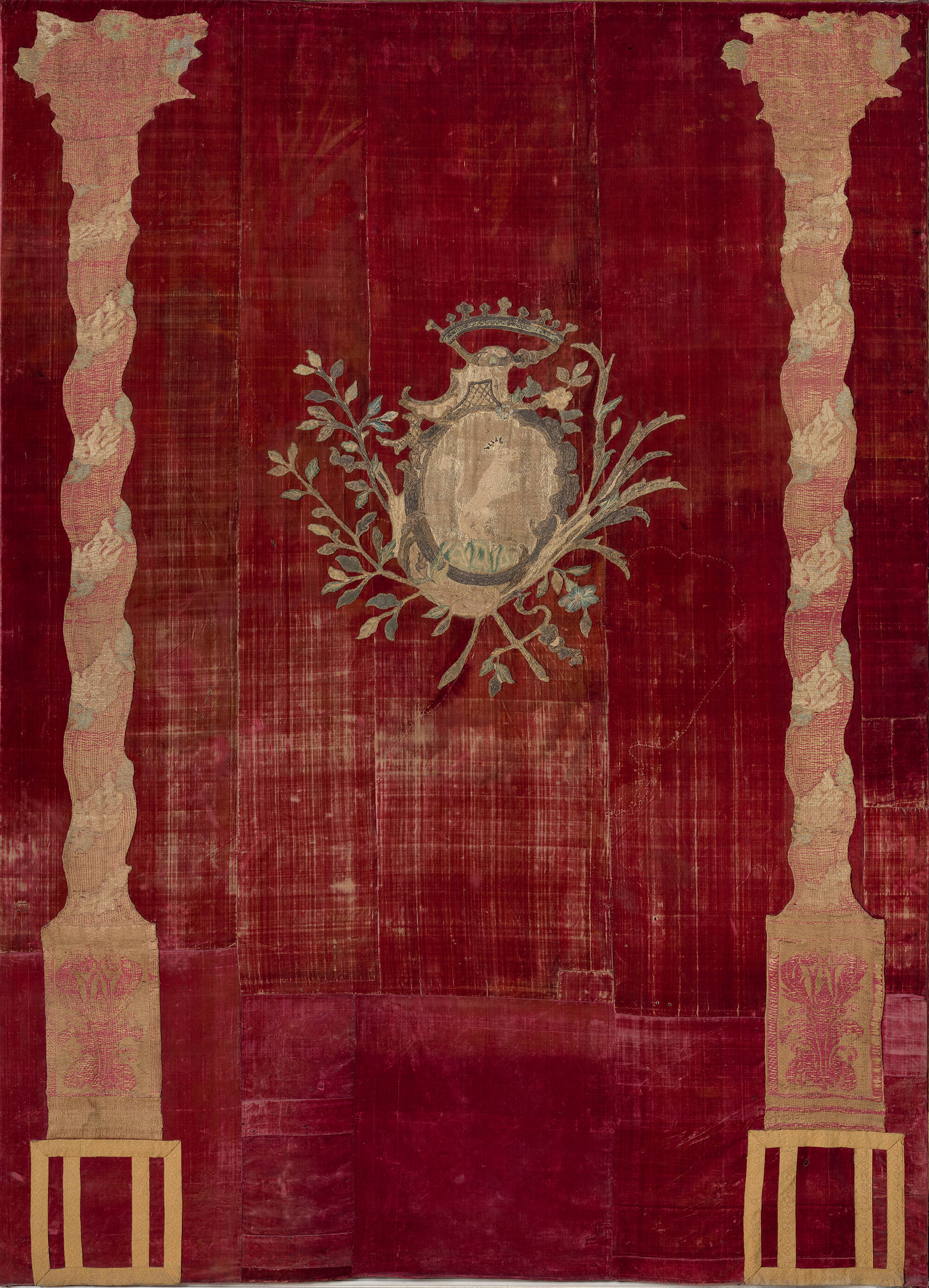 Silk cut velvet, linen tabby embroidered with silk and metal yarns, 255 x 181.9 cm (100 3/8 x 71 5/8 in.)