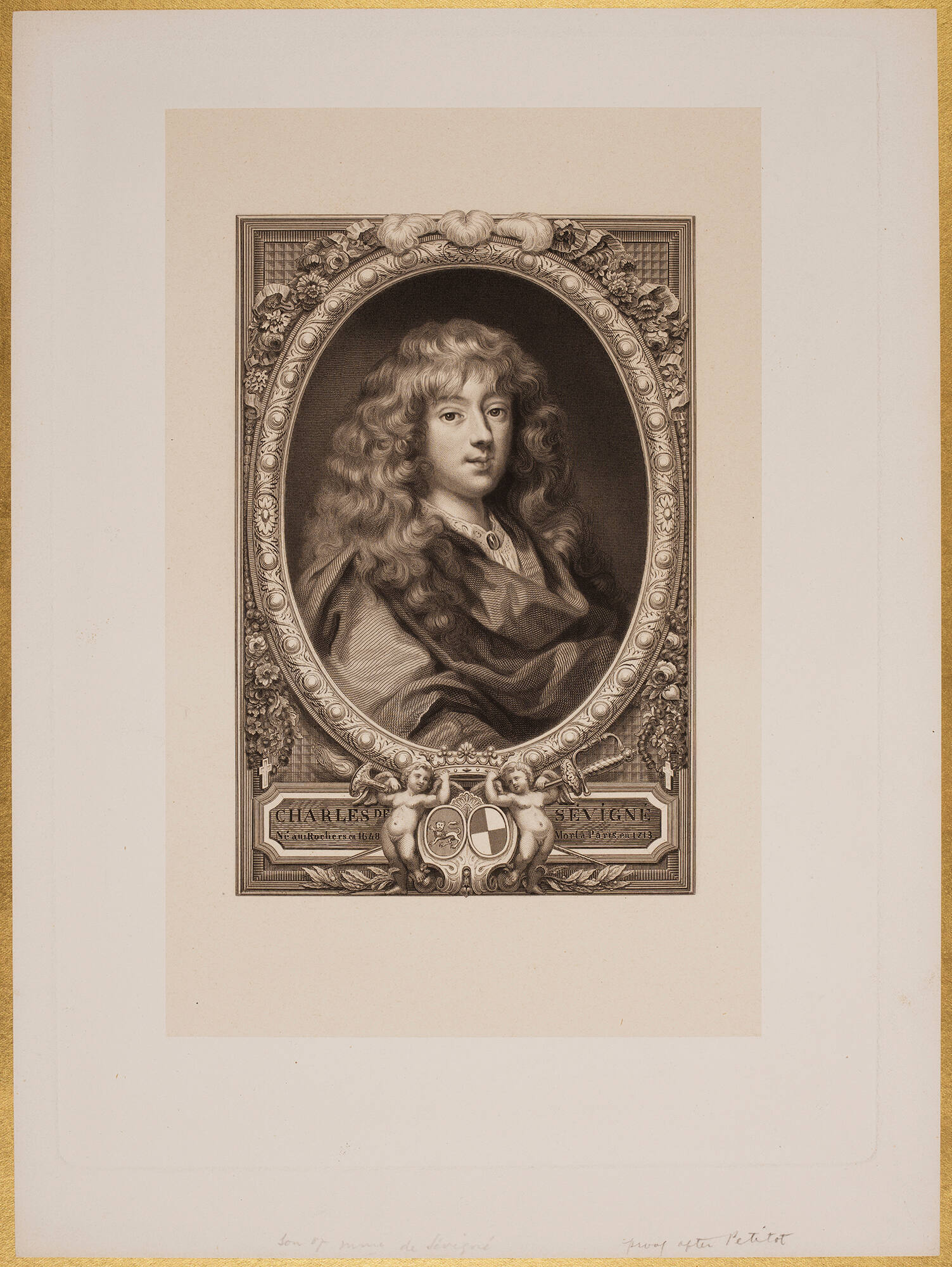 Printed (in placard): Charles de Sévigné / Né aux Rochers en 1648 Morta Paris en 1713