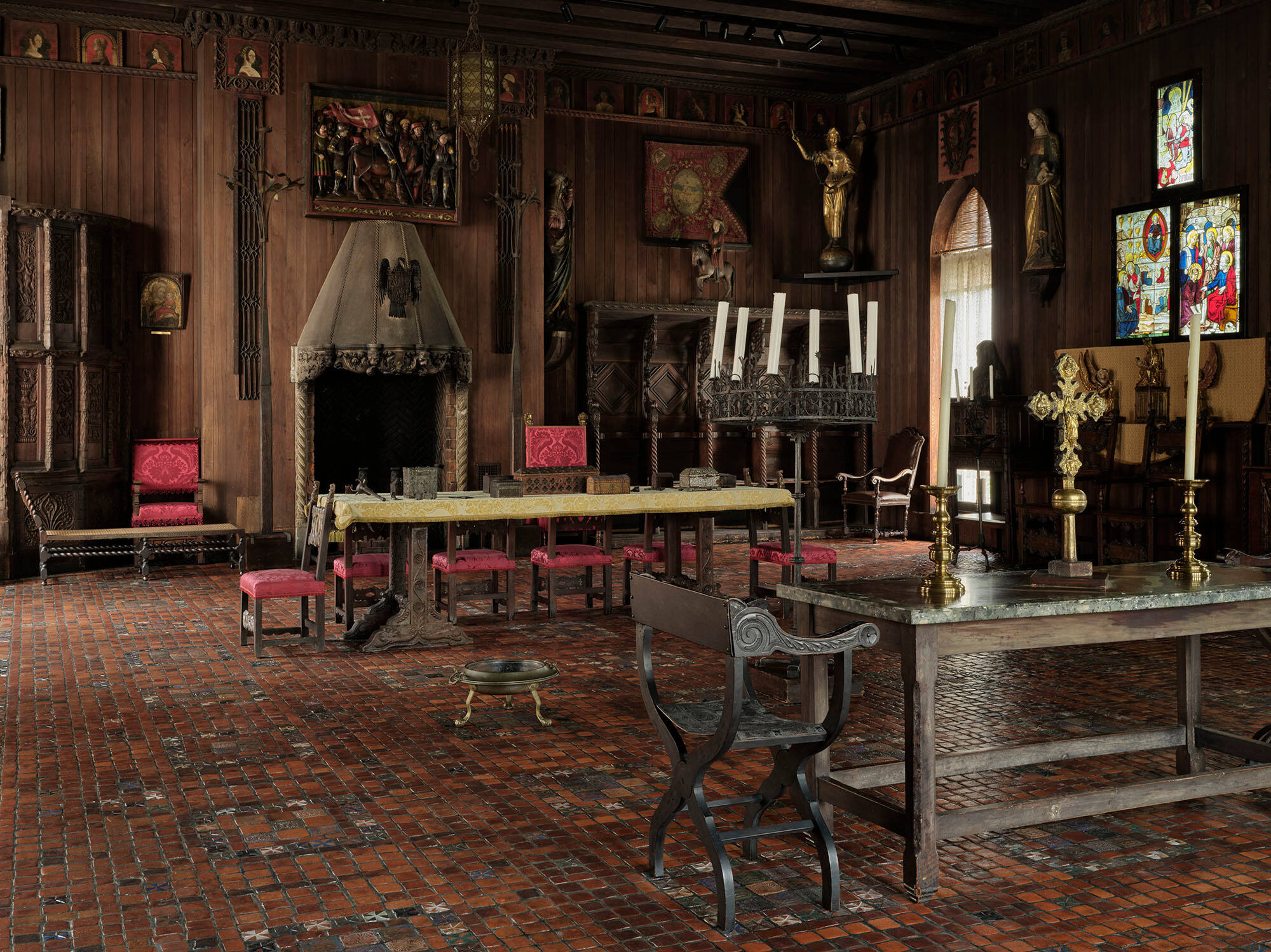 The gilded image of the Archangel Gabriel perches high atop an orb in the southeast corner of the Gothic Room. Said to be from a church demolished by Napoleon, a historical figure of great interest to Isabella, this work was later struck by cannons during the Italian revolution of 1848. Perhaps intrigued by this tale, Isabella chose to display him with the gaping hole still clearly visible in his chest rather than having him restored.