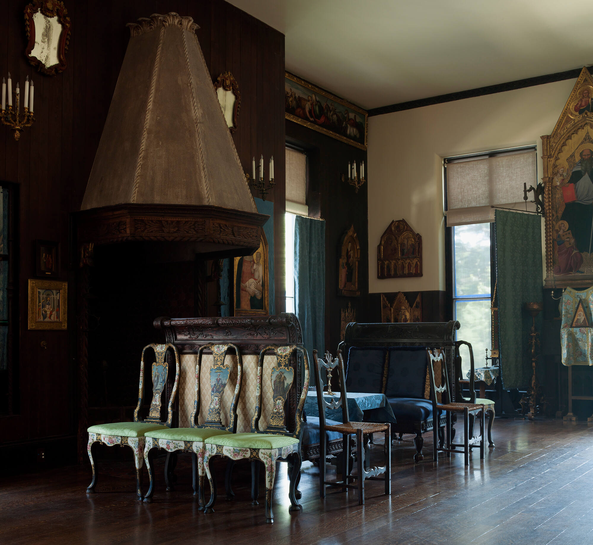 Isabella Stewart Gardner first placed the chairs in her Chinese Room, where they accorded beautifully with the eclectic mixture of Japanese and Chinese objects, as well as nineteenth-century paintings.They are now arranged among painted cassone and altarpieces. Gentile Bellini’s Seated Scribe, displayed in the same gallery, strengthens the links between the arts of Italy and the East.