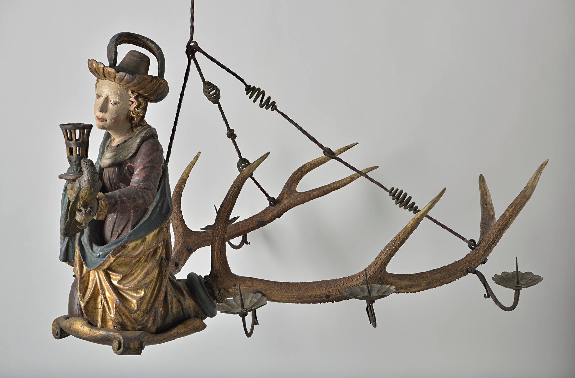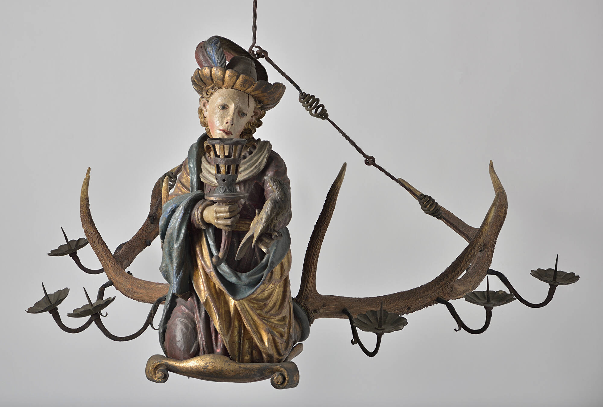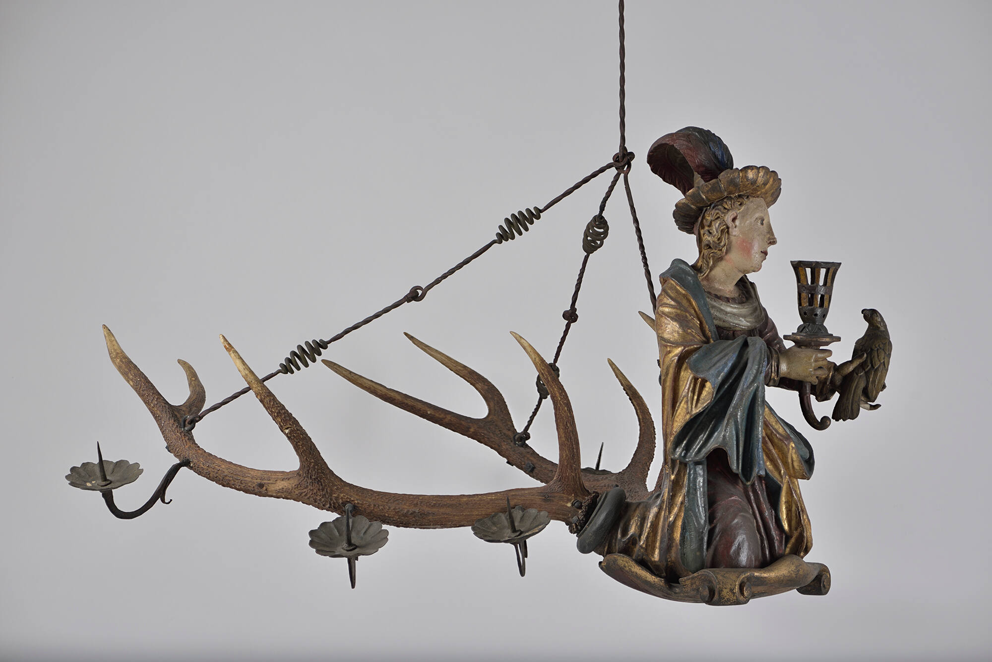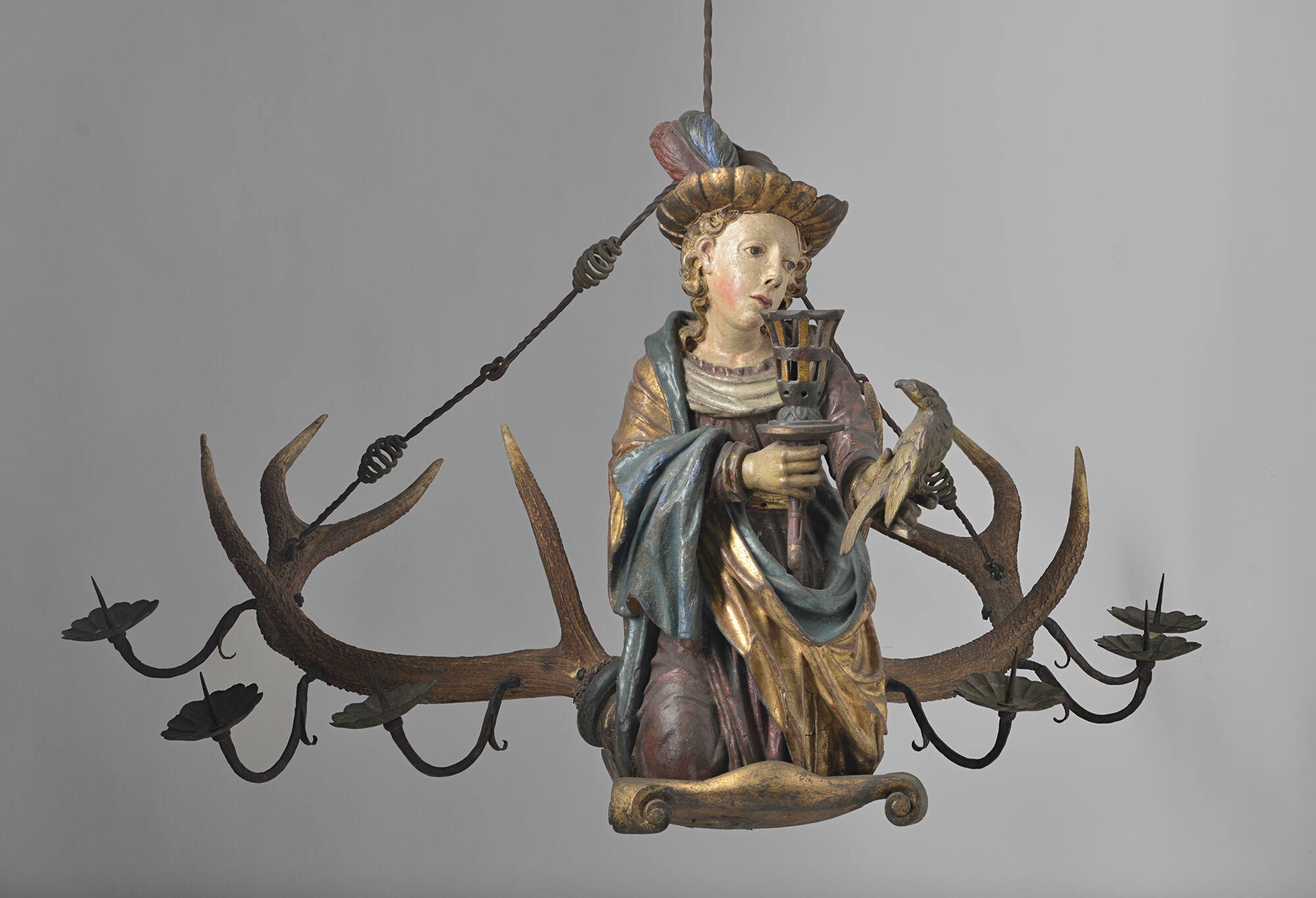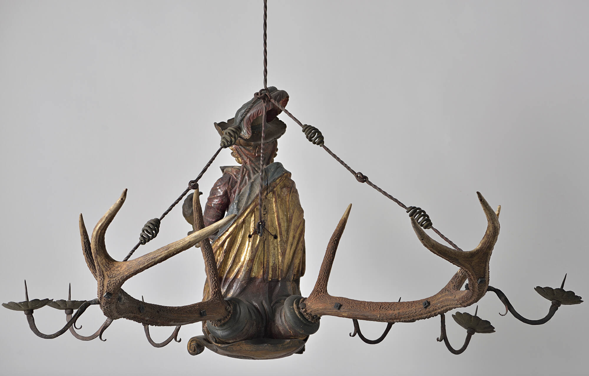 Polychromed and gilded wood with animal horn