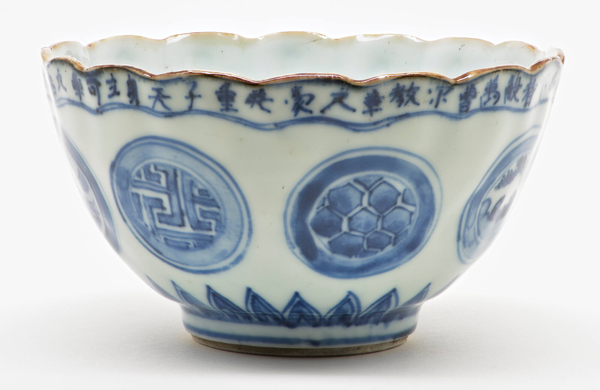 Inscribed (rim): A man must always be industrious; from youth study hard, and by learning attain a high position. In the morning he may be a mere farmer, but by evening he may have access to the Imperial palace. A great statesman originally did not spring from any particular seed. [translation from Chinese]