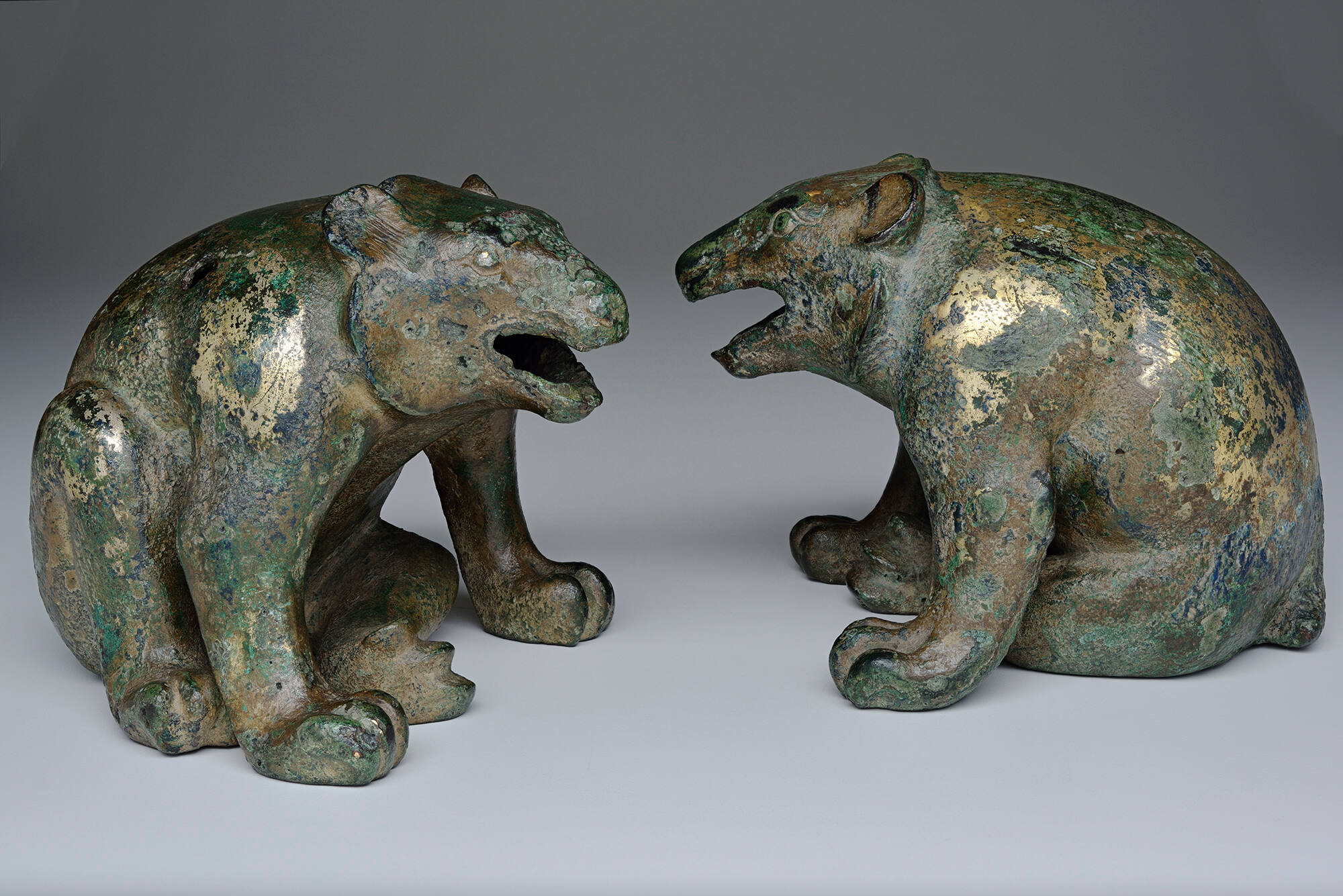 Bears emerged as favored subjects in the art and literature of the Western Han dynasty. They may have had been associated with protective nature spirits, although real bears could also have been seen in the royal zoo of the emperor Wudi (ca. 140–87 BCE) at the capital Chang’an (present-day Xi’an). In fact, the bears in the Gardner Museum, which are unusually large mat weights, were apparently found near Xi’an in 1900.