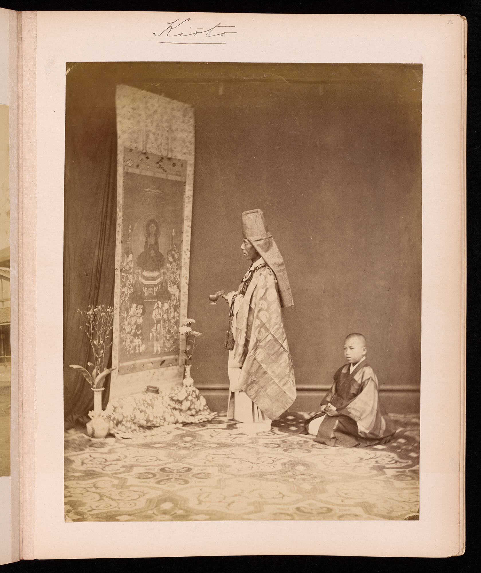 Isabella Stewart Gardner kept records of her worldwide travels in the form of albums. In 1883, Isabella and Jack Gardner were among a select group of wealthy global travelers who were able to take advantage of relaxed political restrictions and improved travel infrastructure early in the modern history of tourism to Japan. The tourism market for photography was already well-established and Isabella purchased nearly two hundred individual photographs from commercial photography studios and other vendors during her visit. She arranged them in this album to chronicle places she visited.