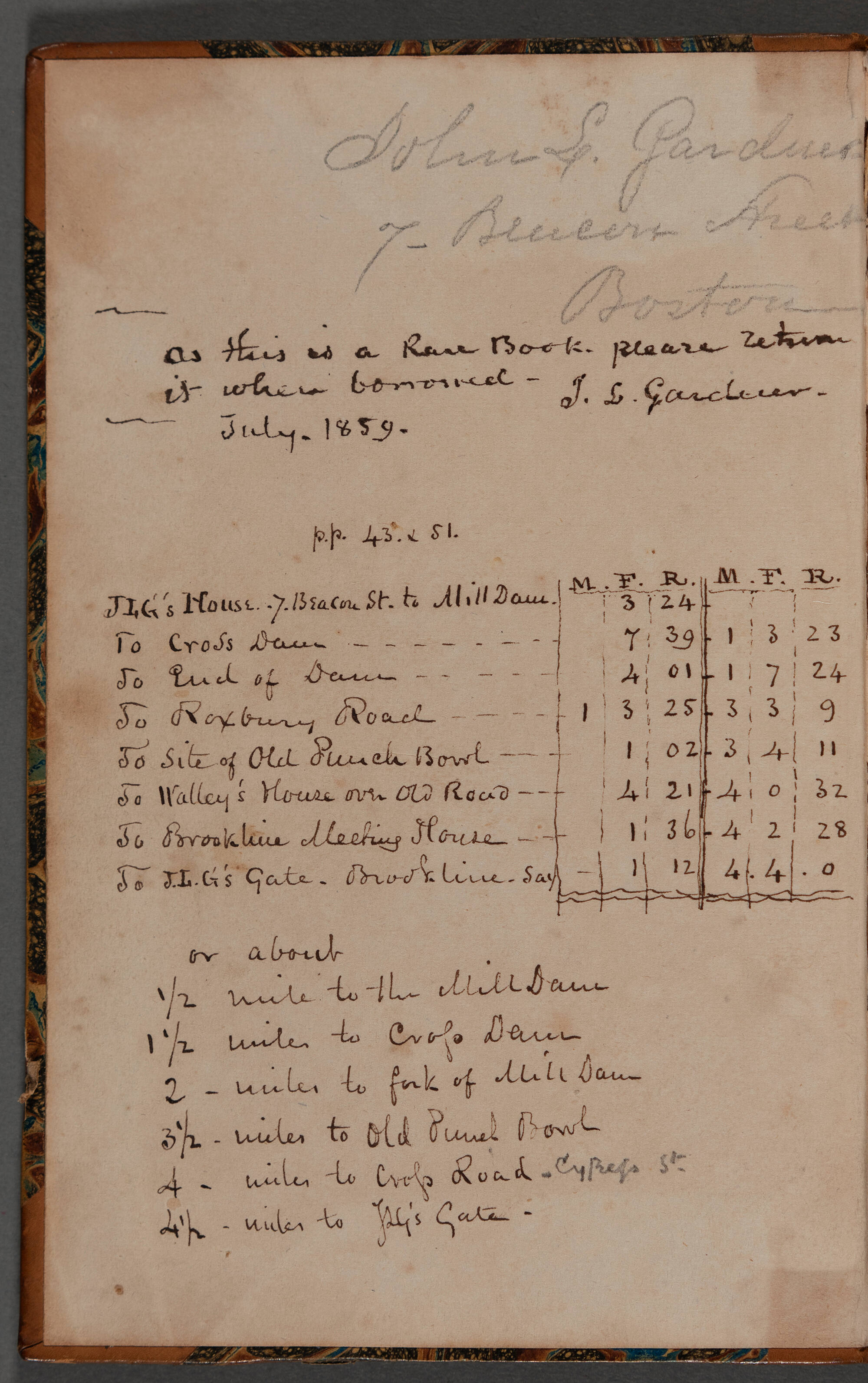 Copiously annotated by John Lowell Gardner on family properties in Massachusetts.