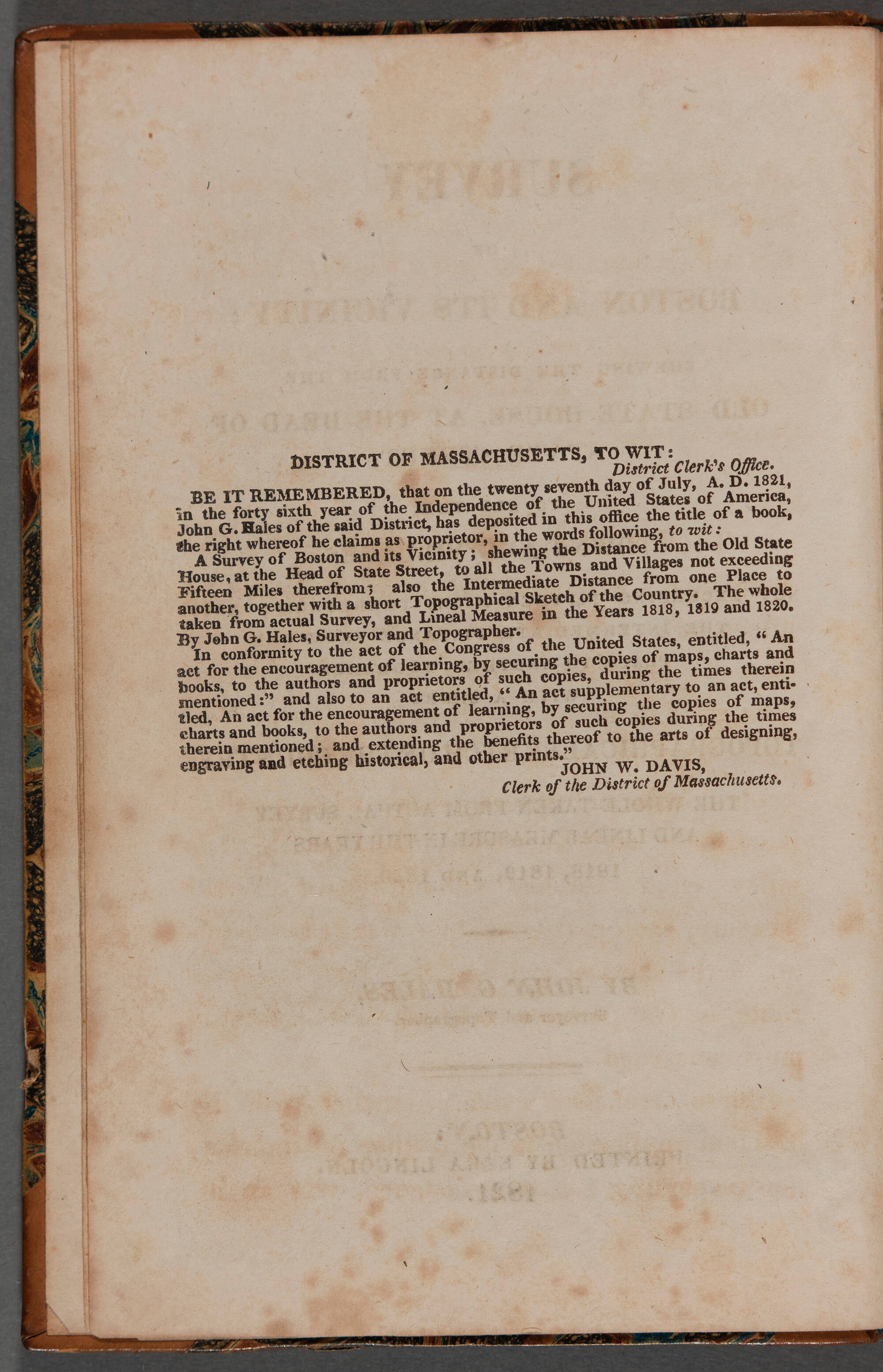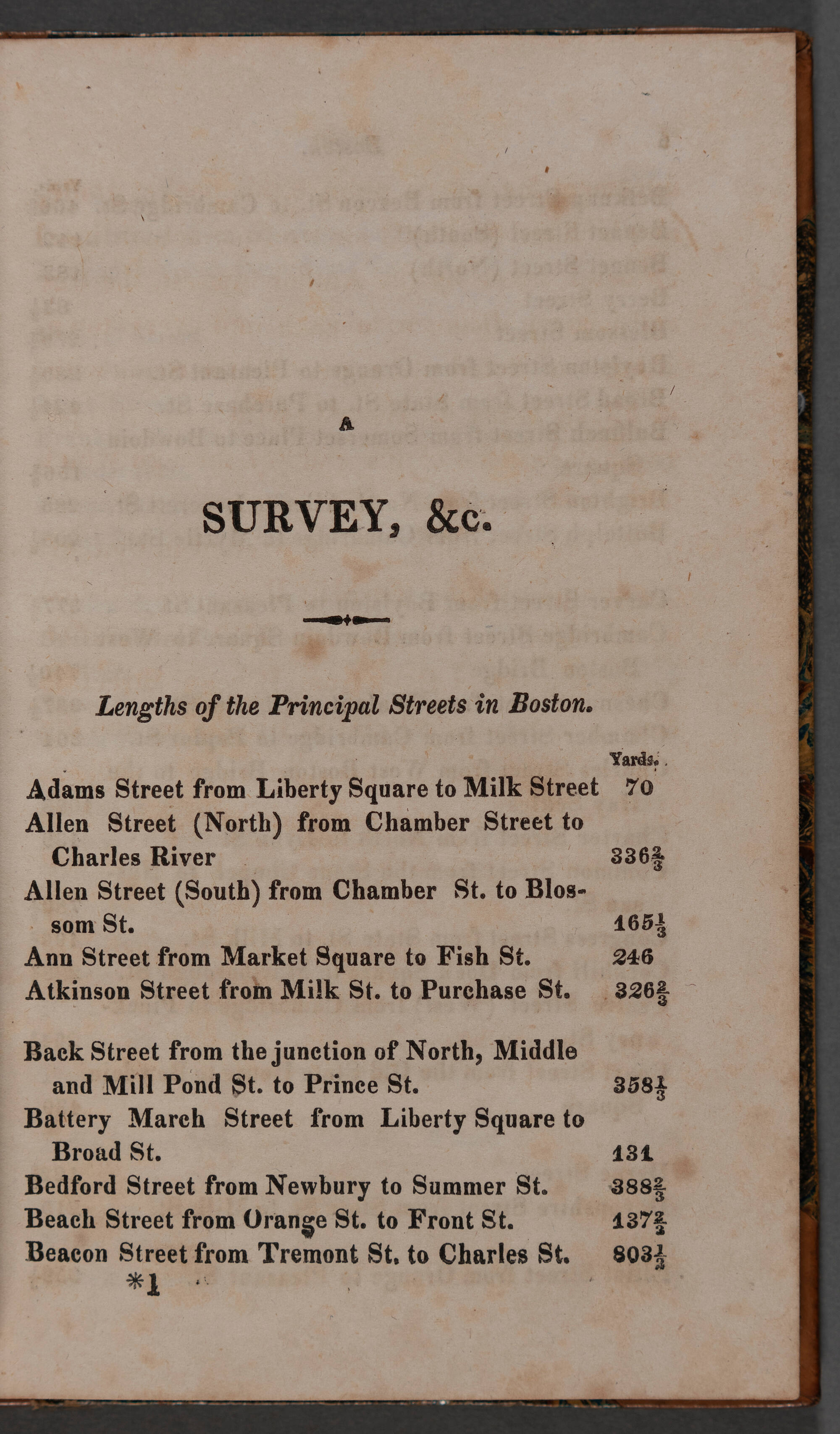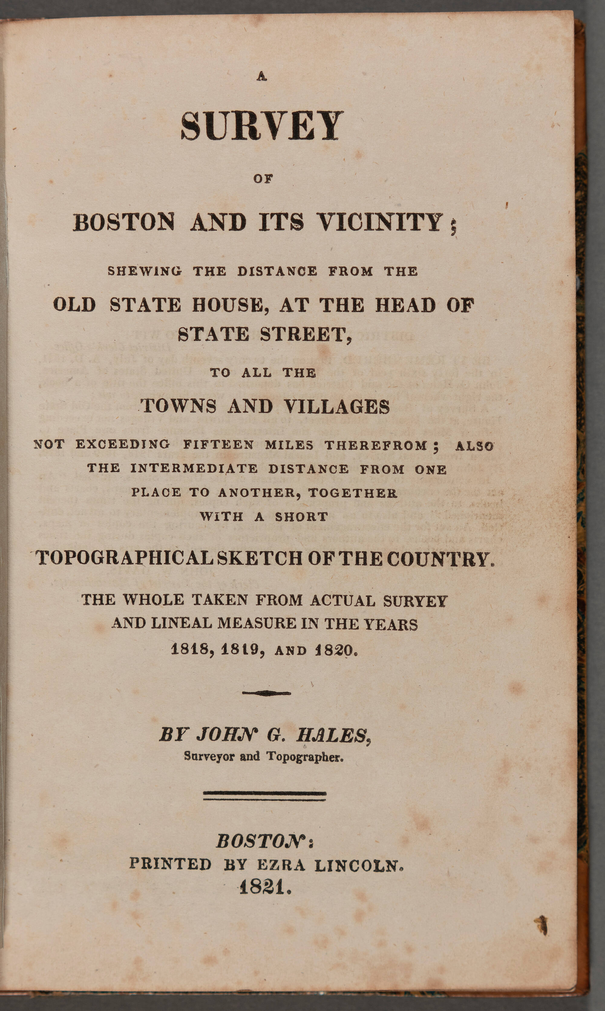 A survey of Boston and its vicinity : shewing the distance from the Old State House, at the head of State Street, to all the towns and villages not exceeding fifteen miles therefrom; also the intermediate distance from one place to another : together with a short topographical sketch of the country, the whole taken from actual survey and lineal measure in the years 1818, 1819, and 1820