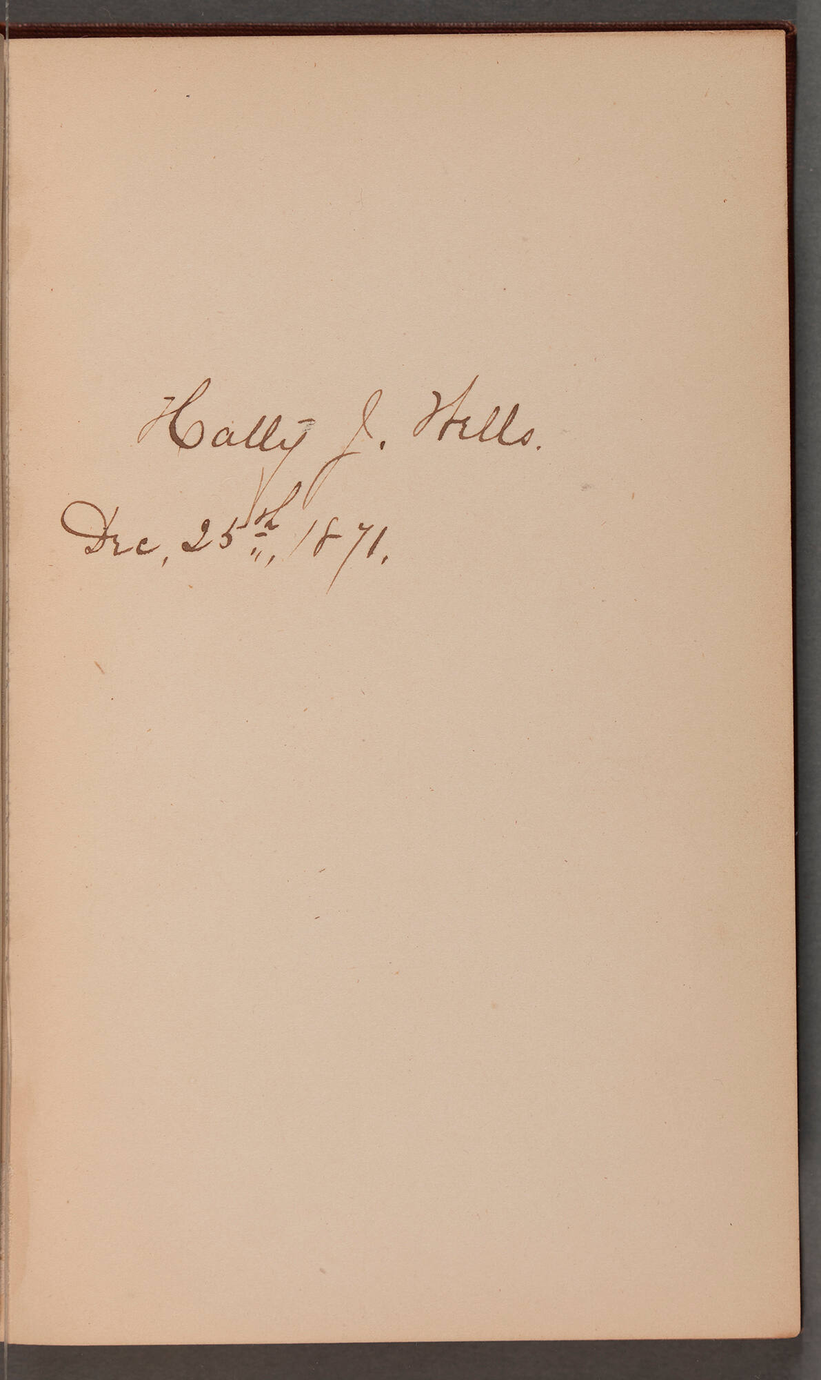 Inscribed in ink (on flyleaf): Hally J. Mills/ Dec. 25th, 1871