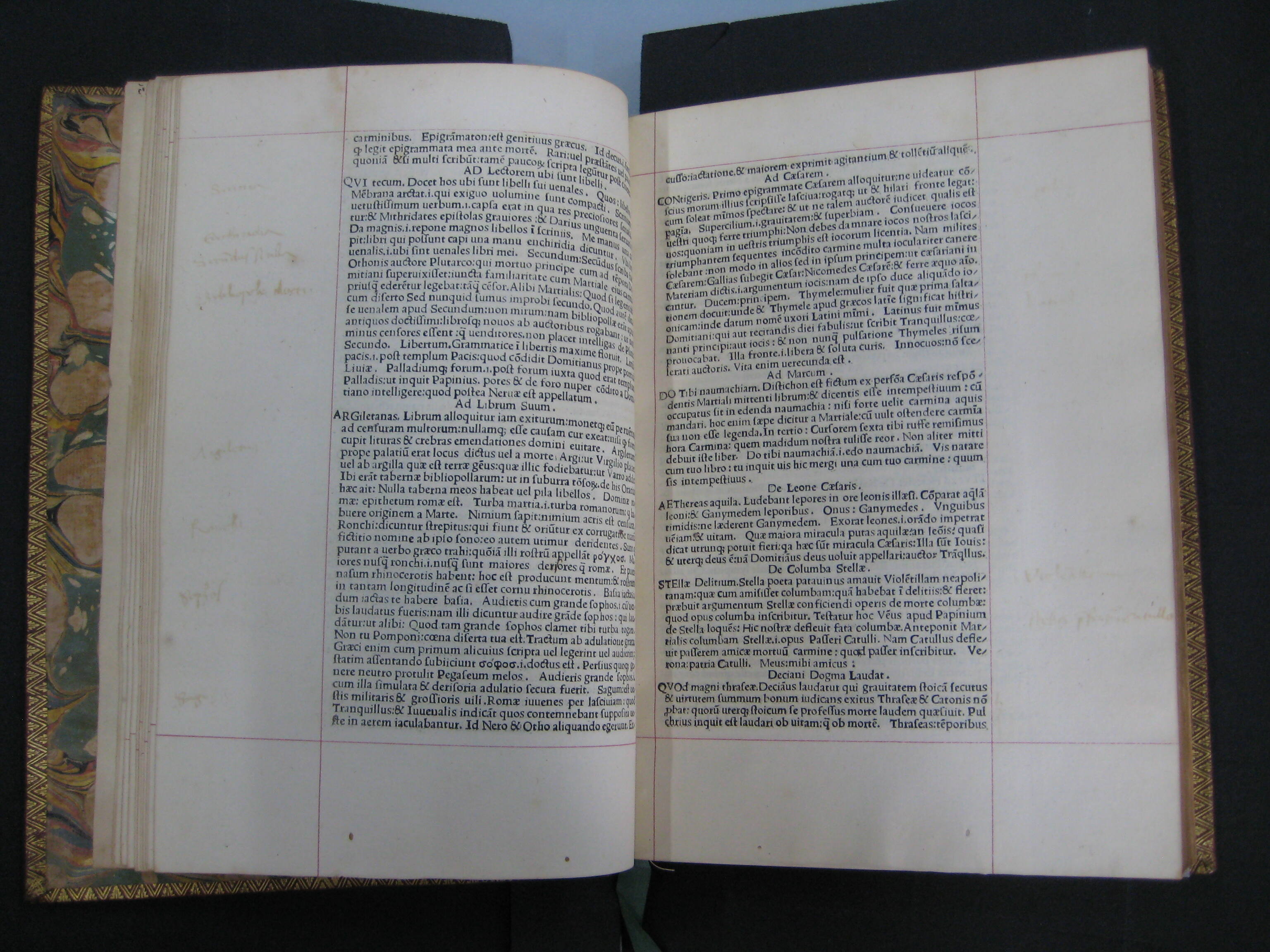 The Roman poet Marcus Valerius Martialis, 40-104 AD, was famous for his witty and graphic epigrams--short verses which captured a wide variety of his fellow Romans. Calderino's Renaissance commentary gave his audience a social and political background for Martial's poetry. This is its second edition (dated September 13) appearing only six months after the first edition.