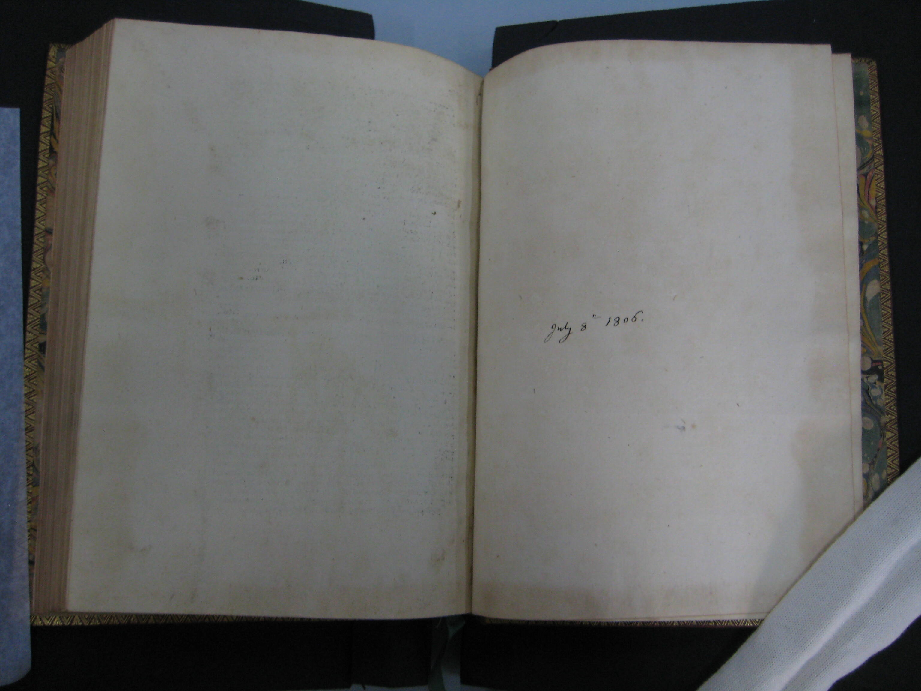 Inscribed in pen (recto of first back fly-leaf): July 8th 1806