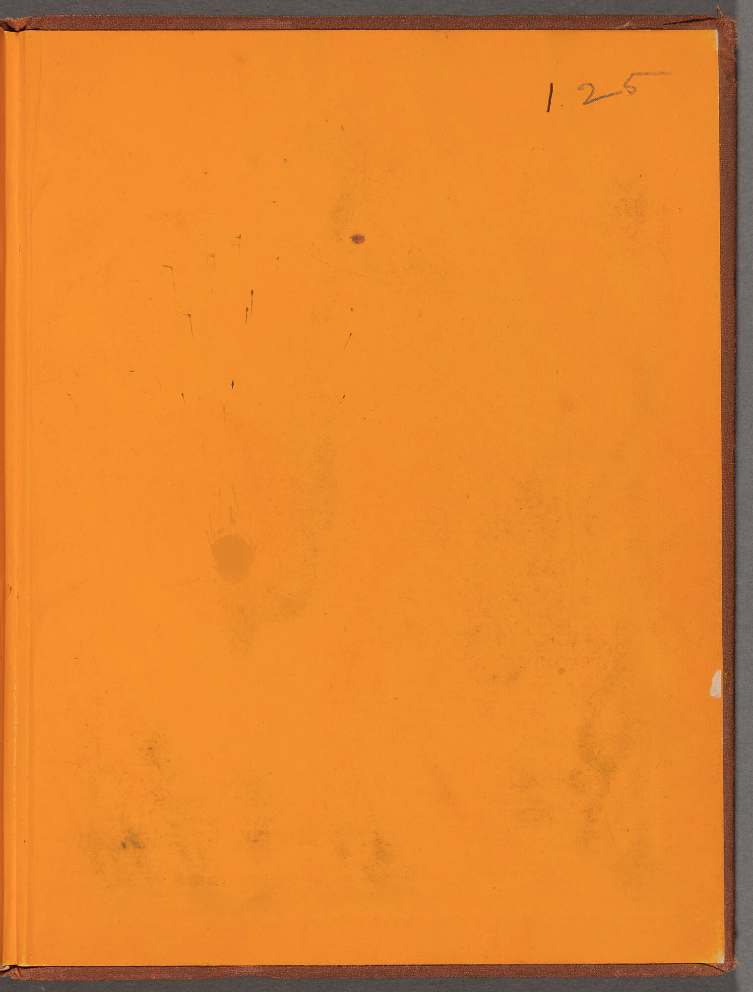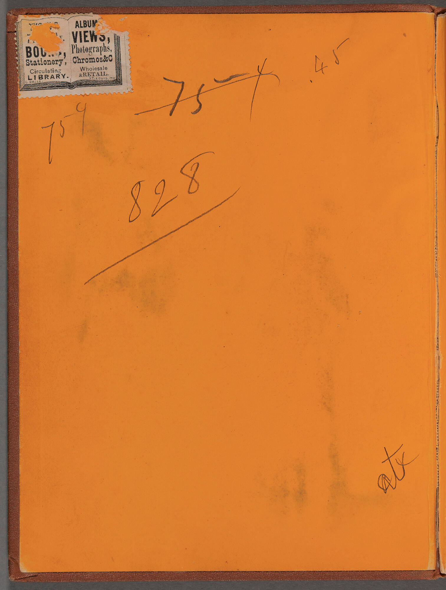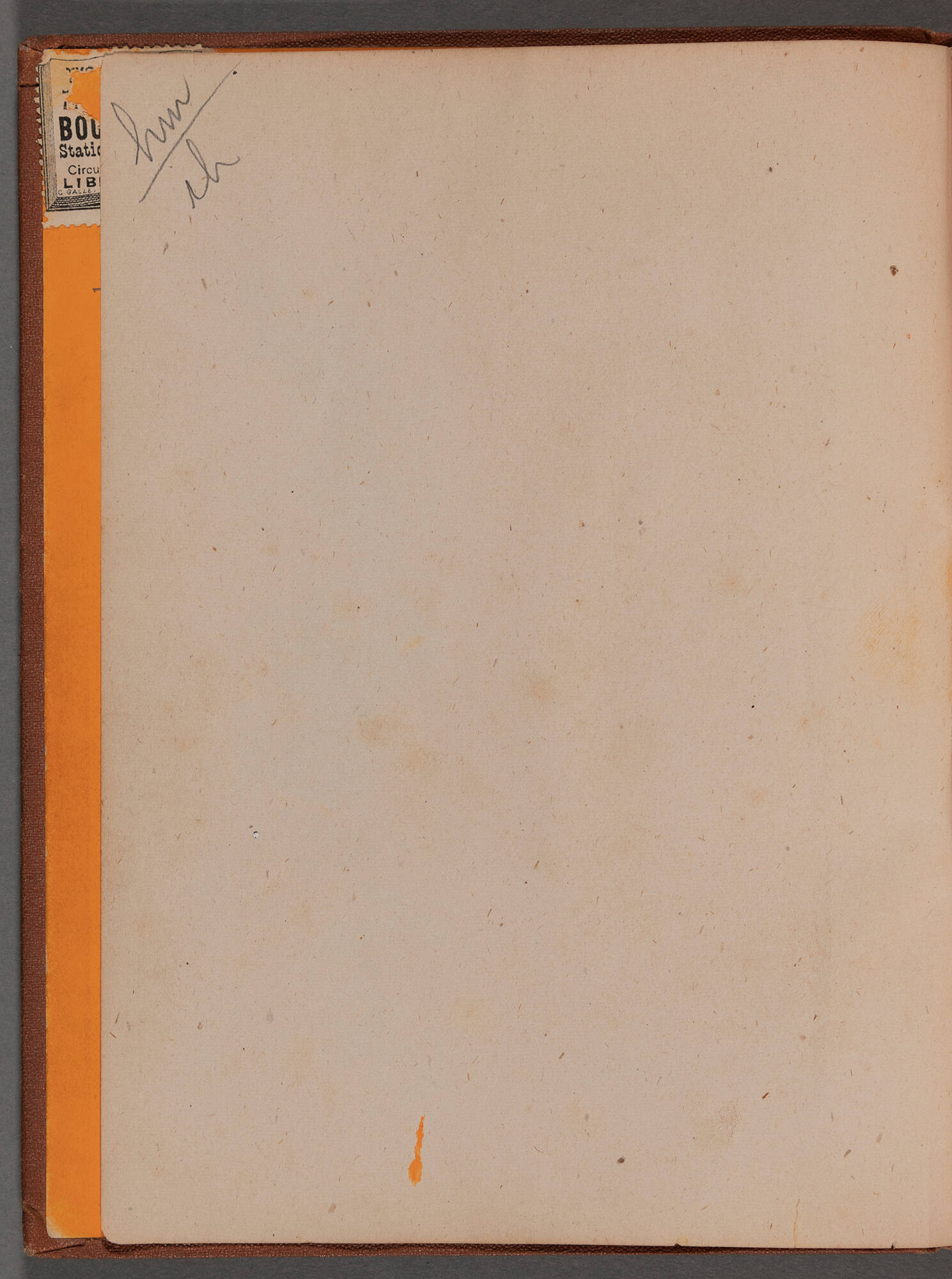 brown cloth; gilt stamped lettering; orange end pages