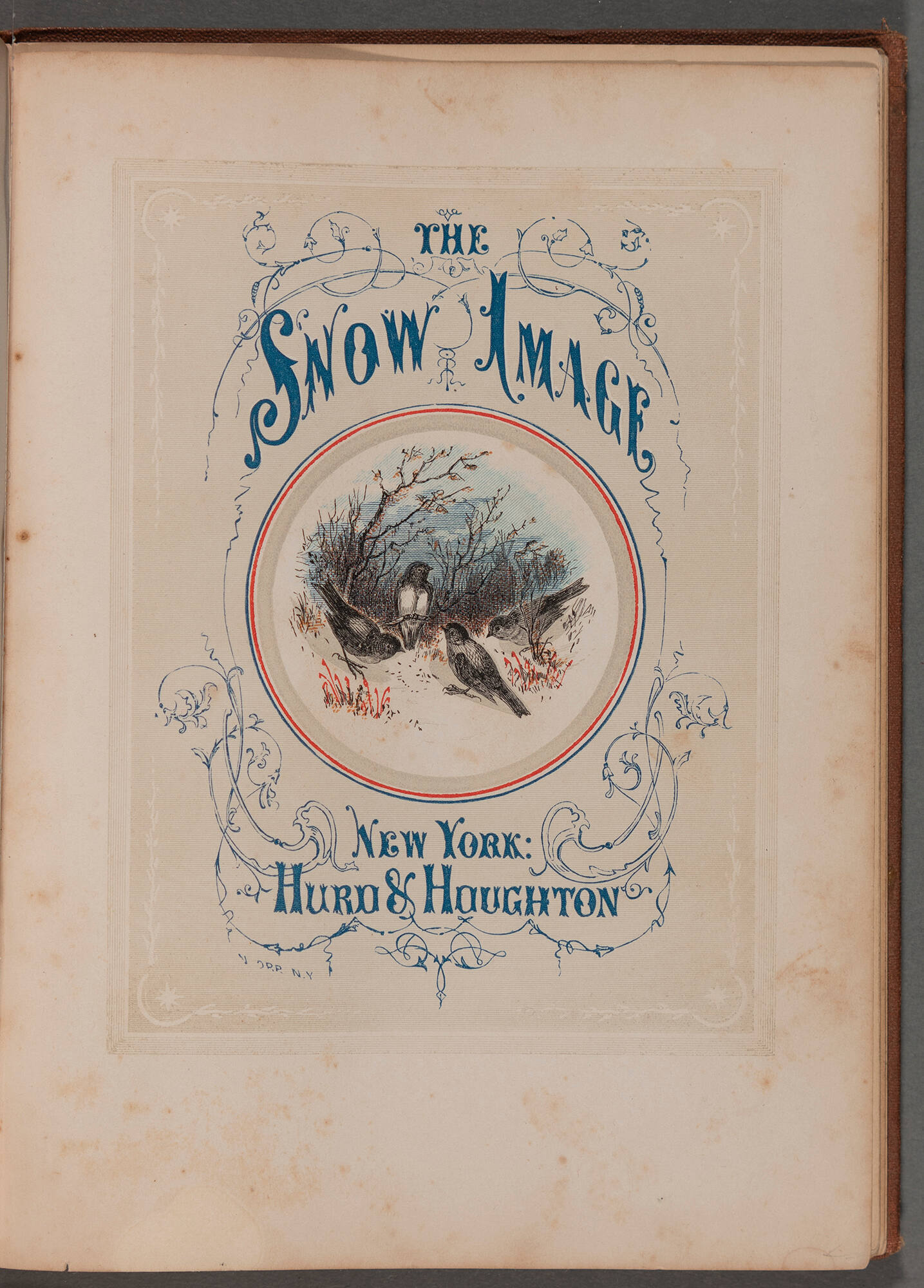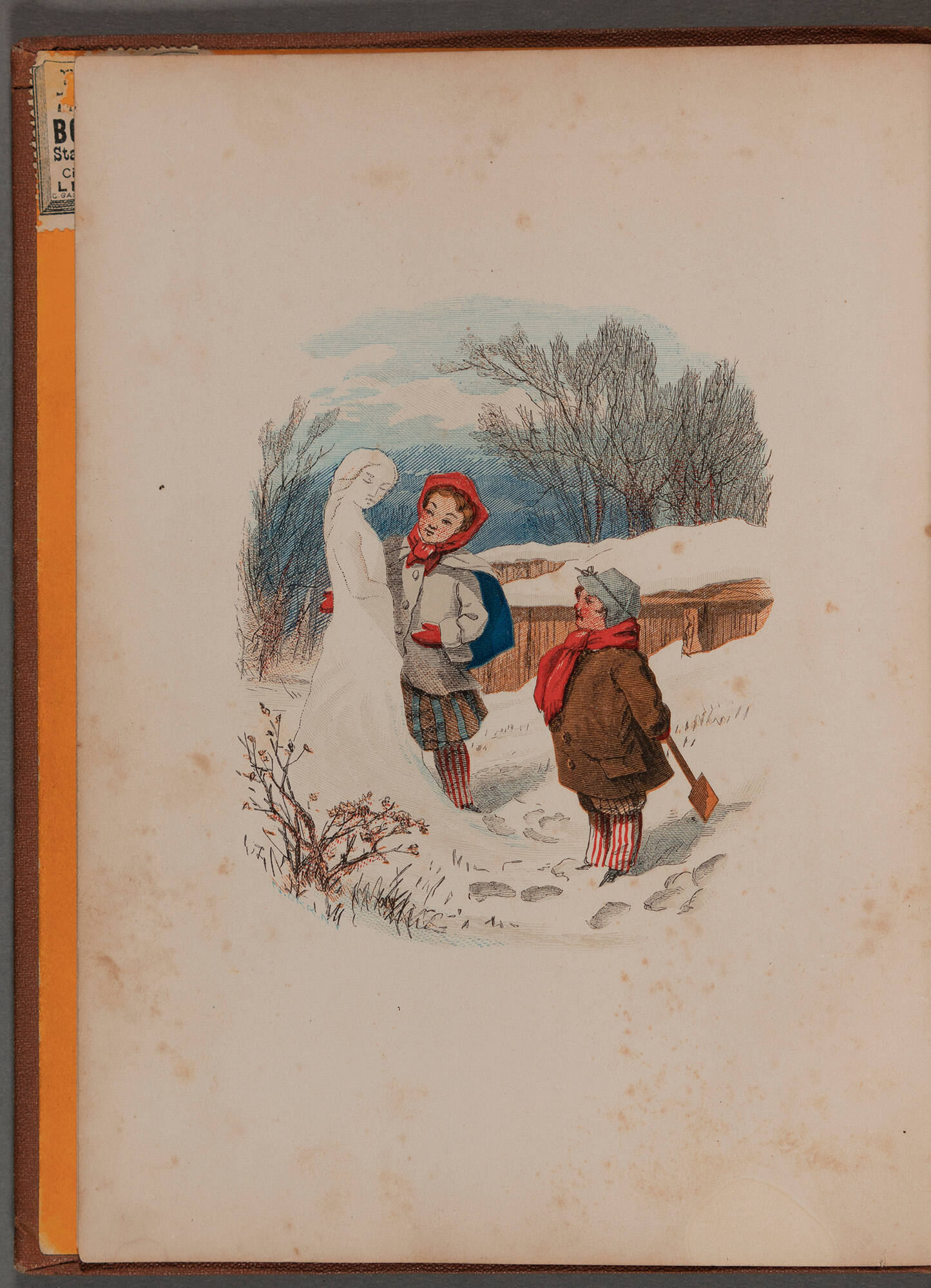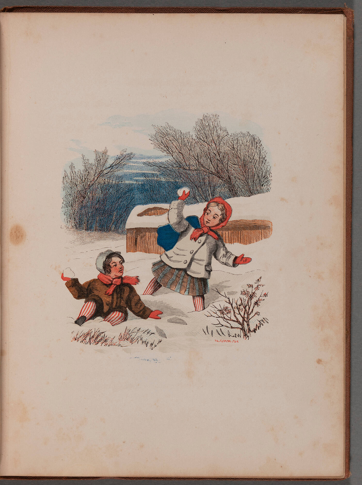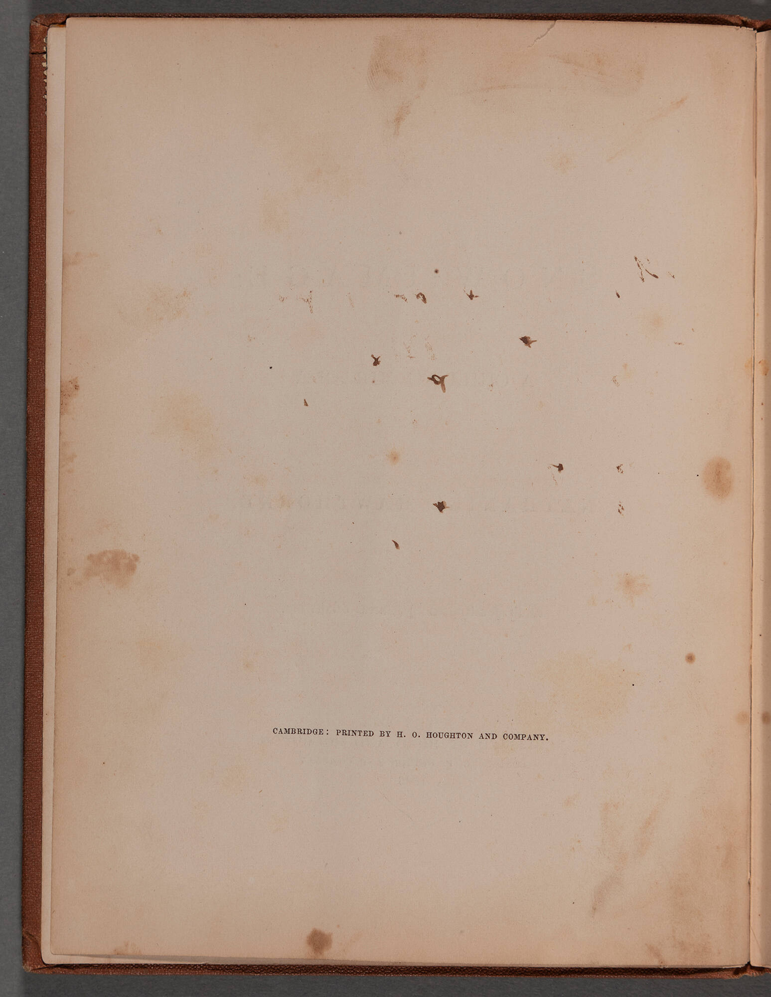 brown cloth; gilt stamped lettering; orange end pages