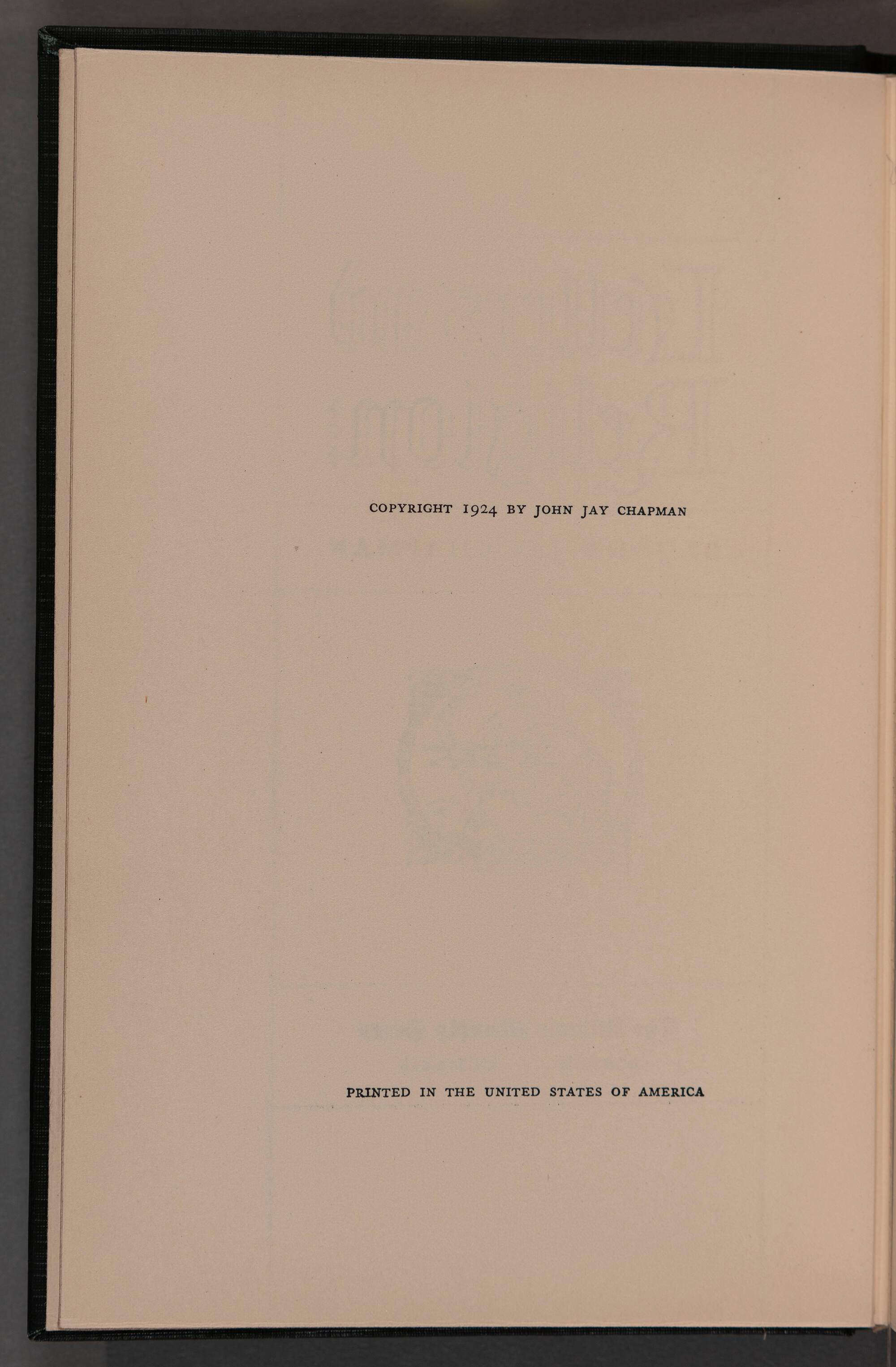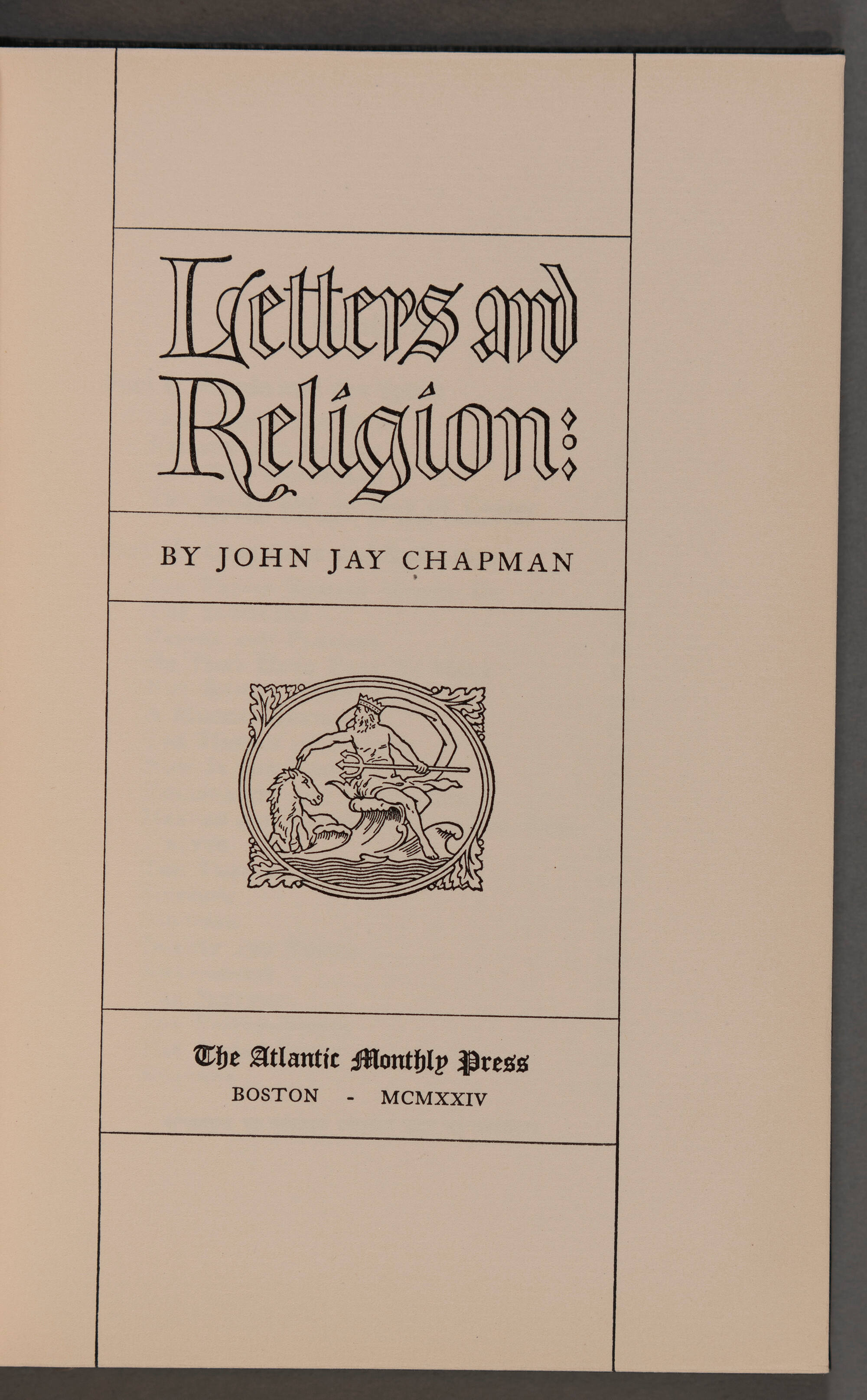Gift from author John Jay Chapman (1862-1933) to Isabella Stewart Gardner 27 March 1924.