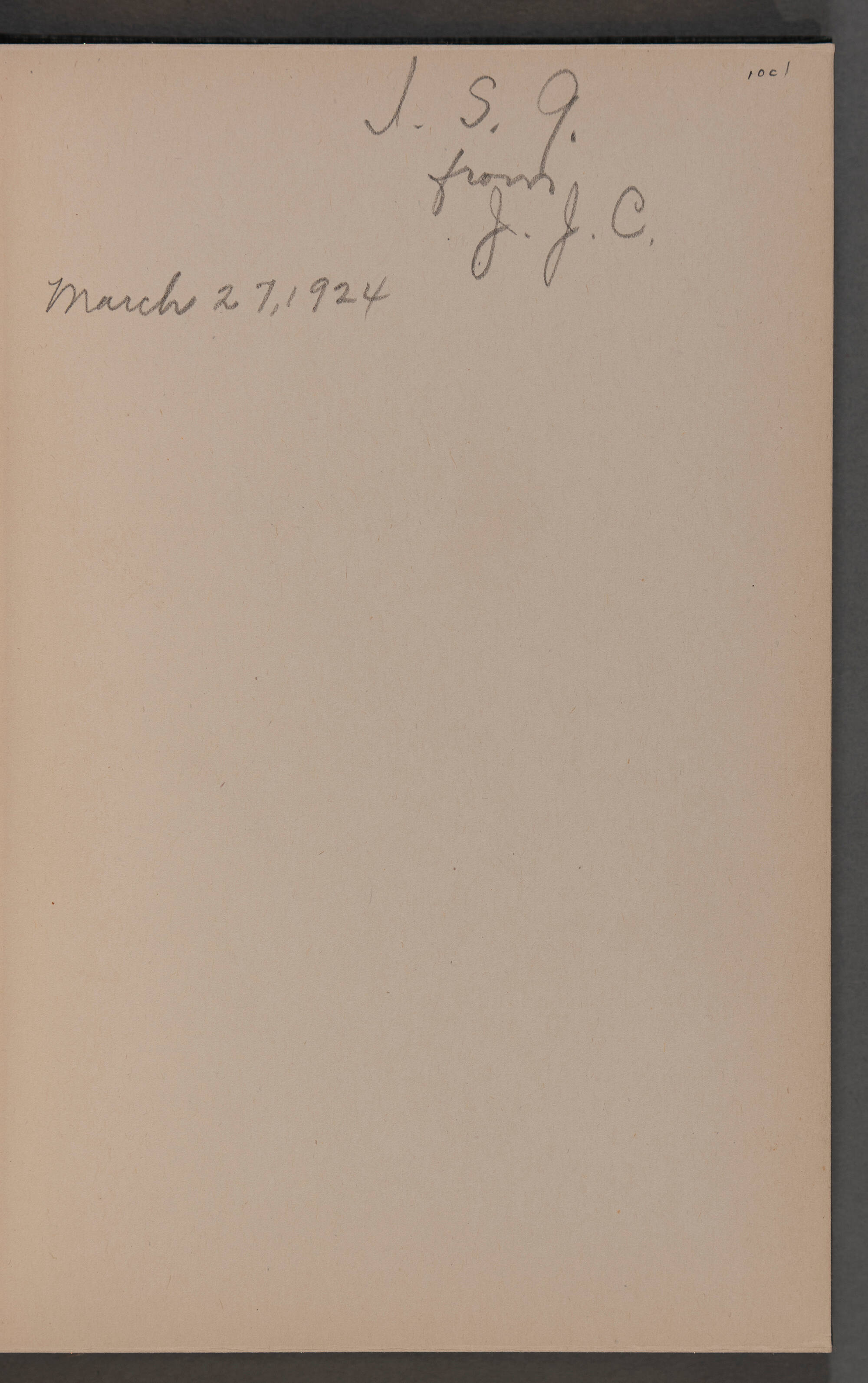 Inscribed in pencil (on front end paper): I.S.G. / from J.J.C. / March 27, 1924