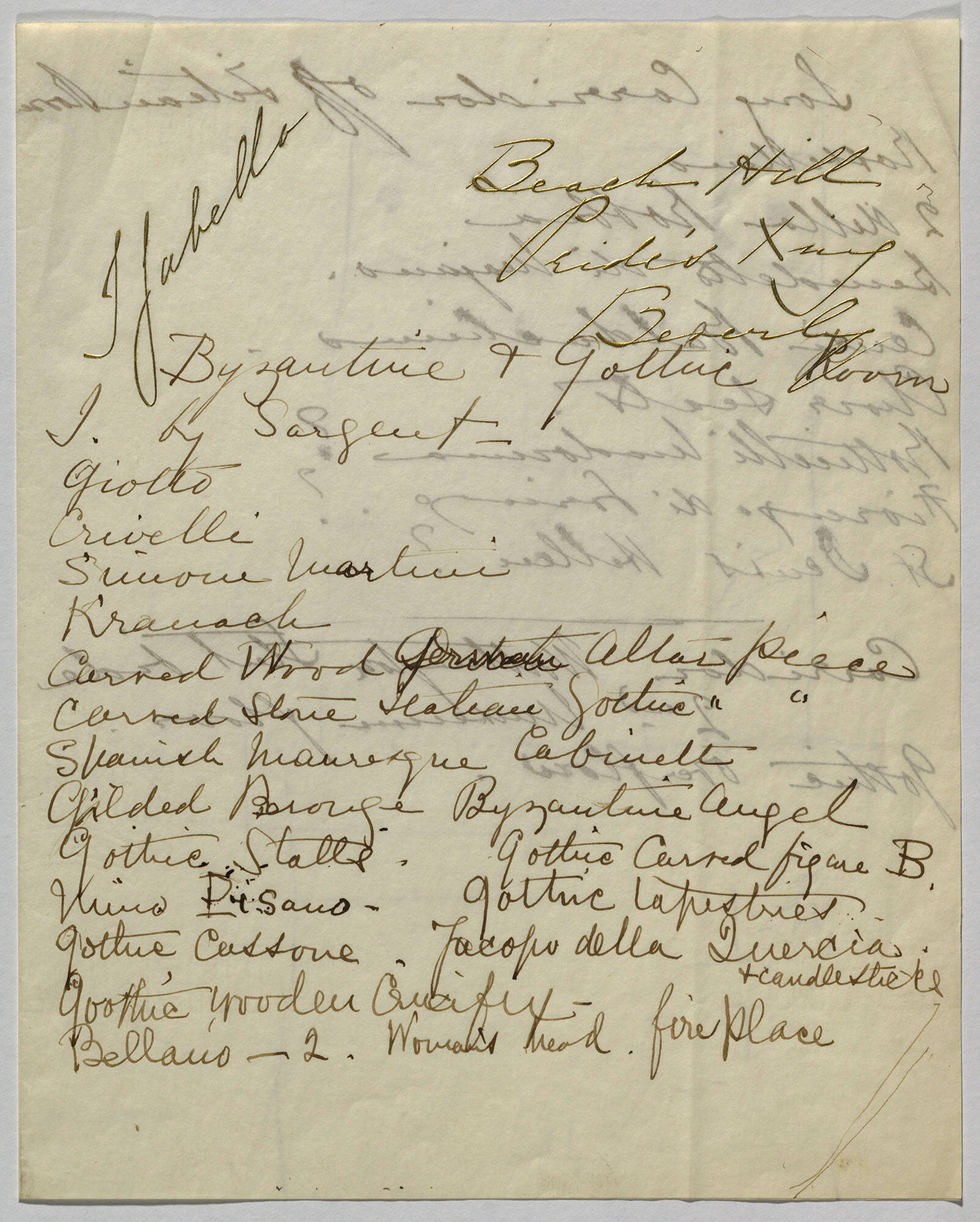 Isabella Stewart Gardner - List for the Gothic Room, Fenway Court, 1900