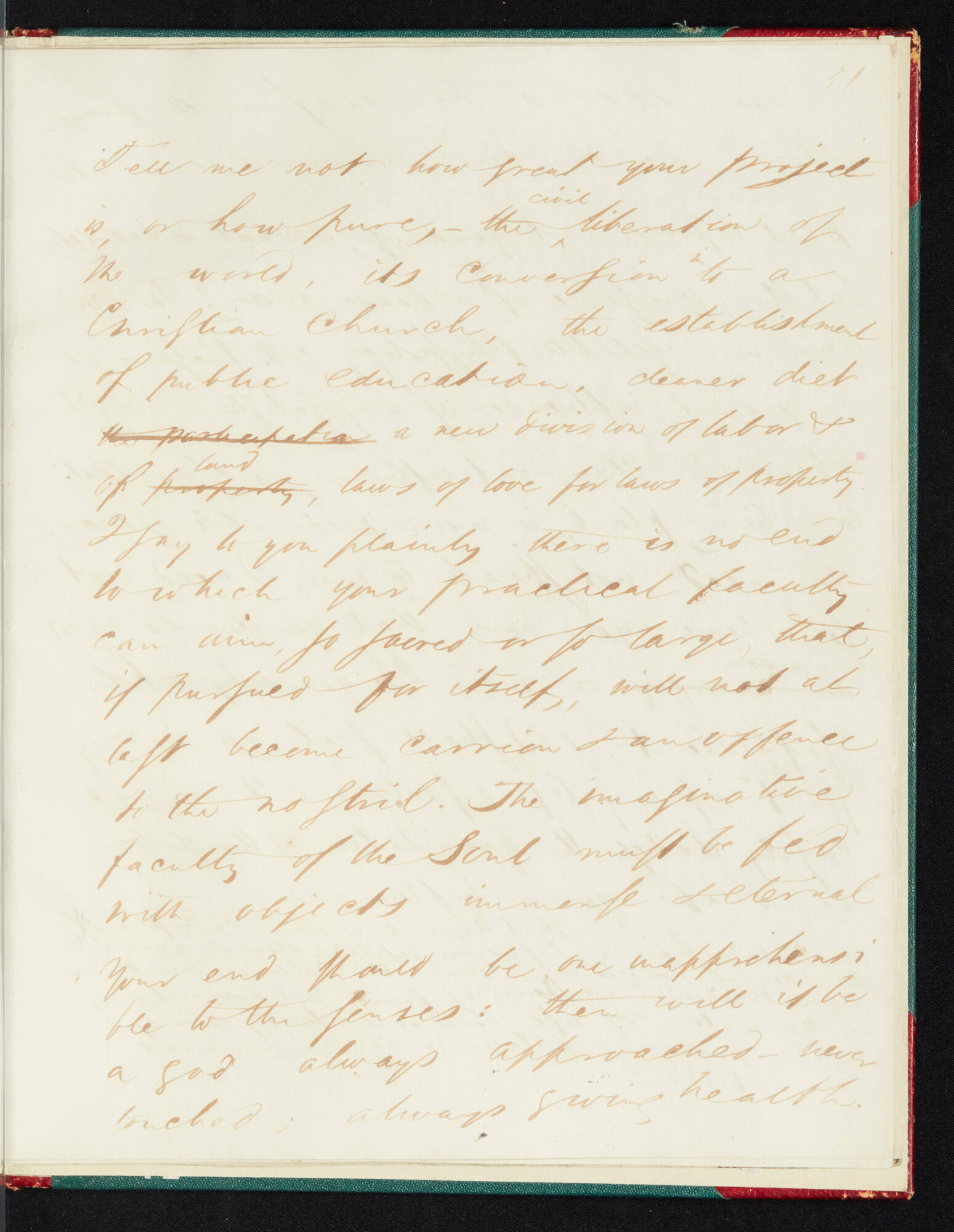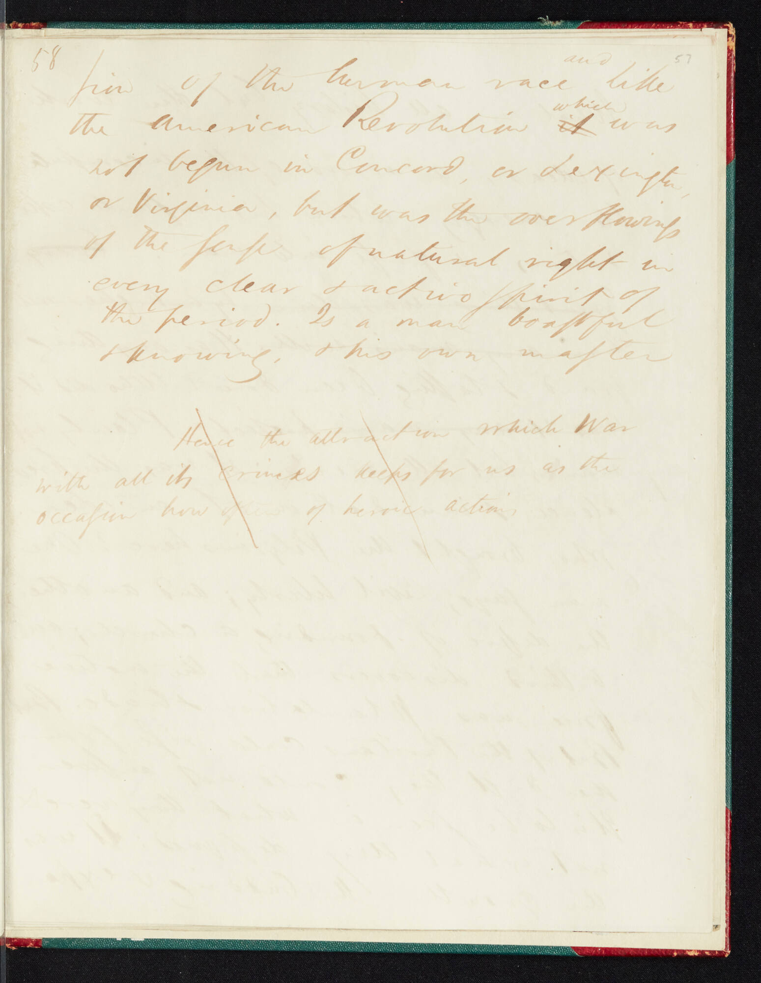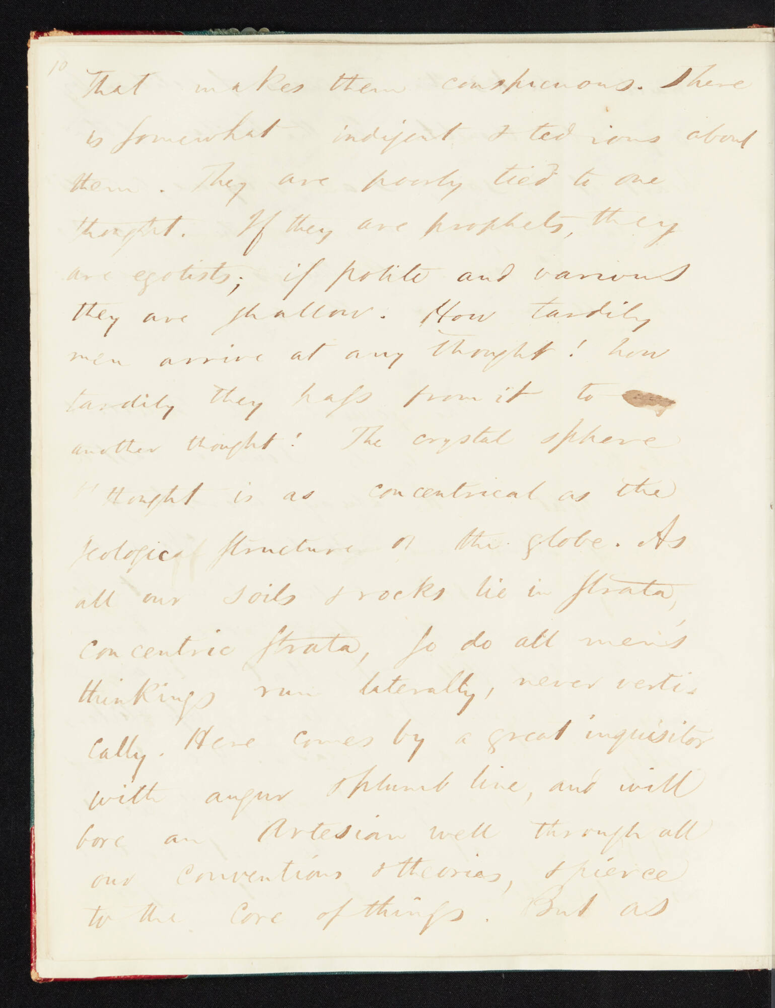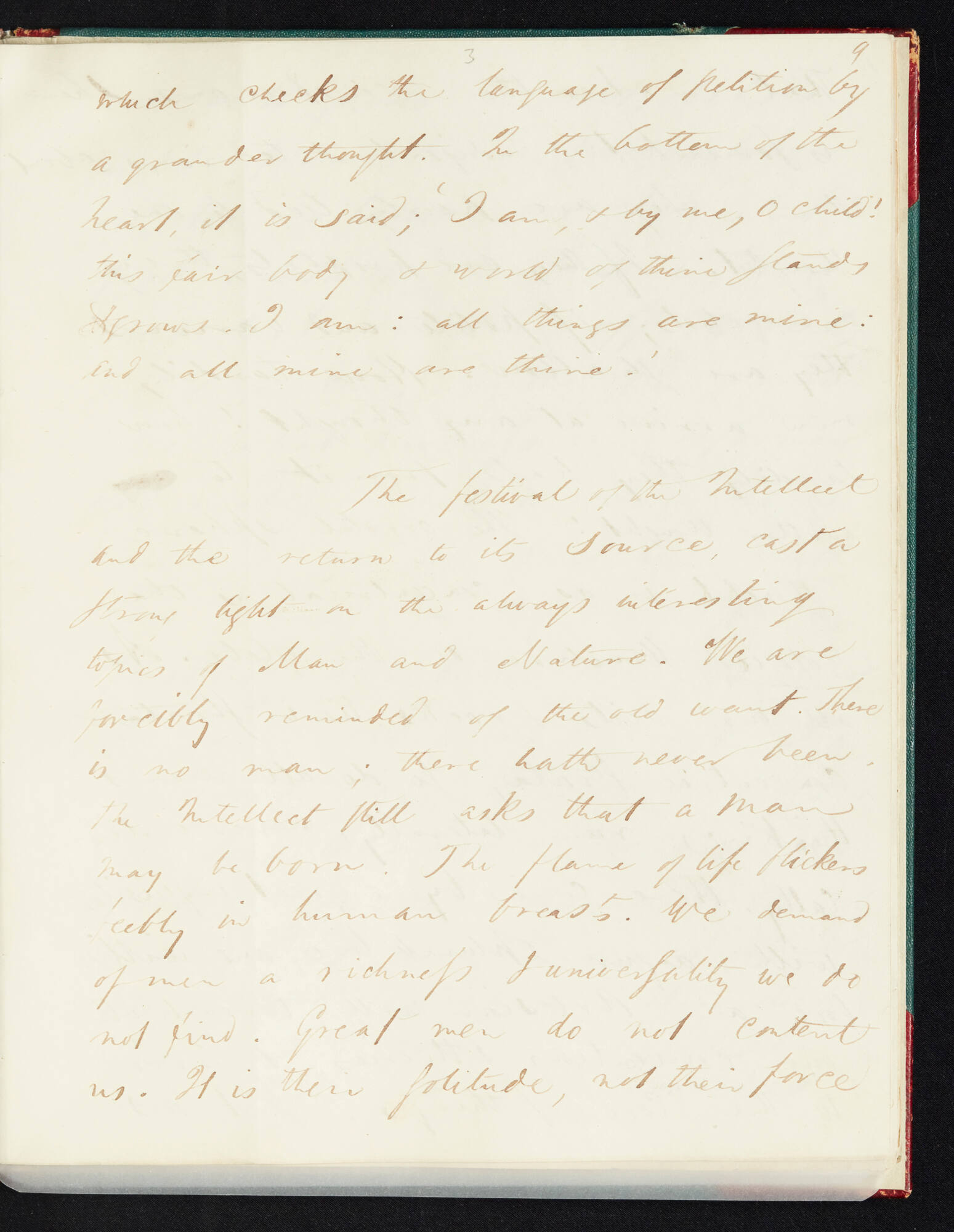 Ralph Waldo Emerson was a central figure in the Transcendentalist movement. His writing is synonymous with its progressive social values and spiritual identification with the natural environment. This original manuscript contains an address given at a college in Maine in 1841 and shows signs of the author’s own edits. Isabella Stewart Gardner displayed this manuscript alongside materials related to other important American authors, including Nathaniel Hawthorne and Walt Whitman, in the Blue Room.