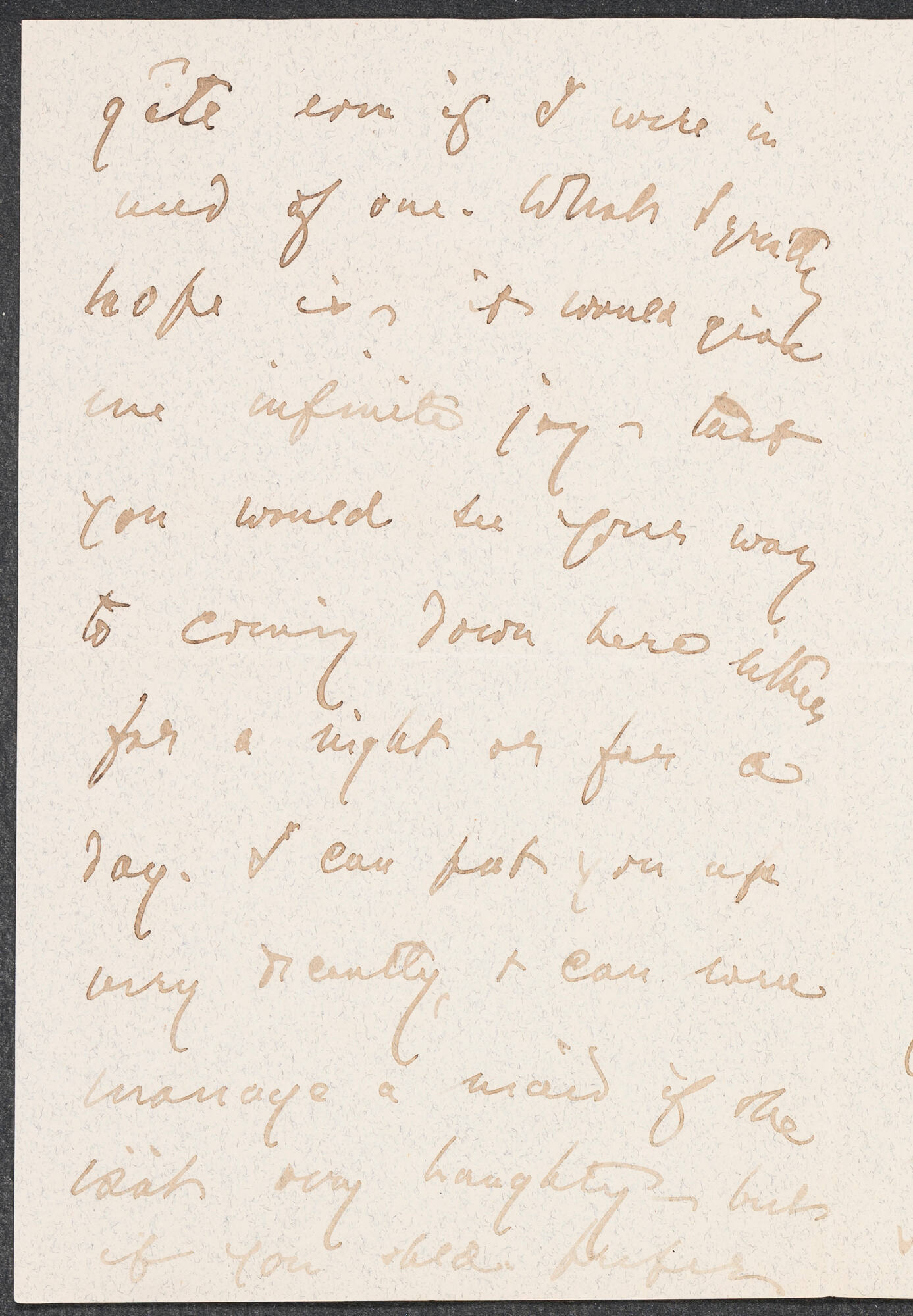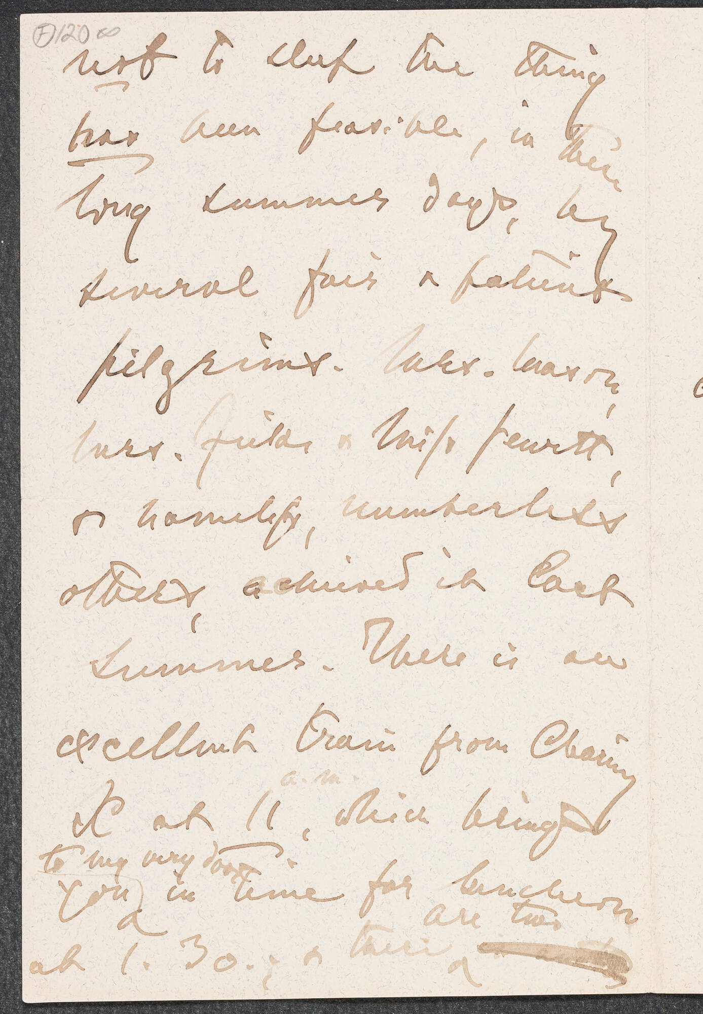 “Welcome, welcome, fifty times welcome back to this warm side of the globe.” With these affectionate words, Henry James greets Isabella Stewart Gardner on her return to London in 1899. Gardner often stopped in London on her way to Venice and other cities in Europe and regularly took trains into the English countryside for sightseeing and social engagements. James urges her to take a train to visit him at Lamb House, his home in Rye, East Sussex, saying that he “can put you up very decently, & can even manage a maid if she isn’t very haughty.”