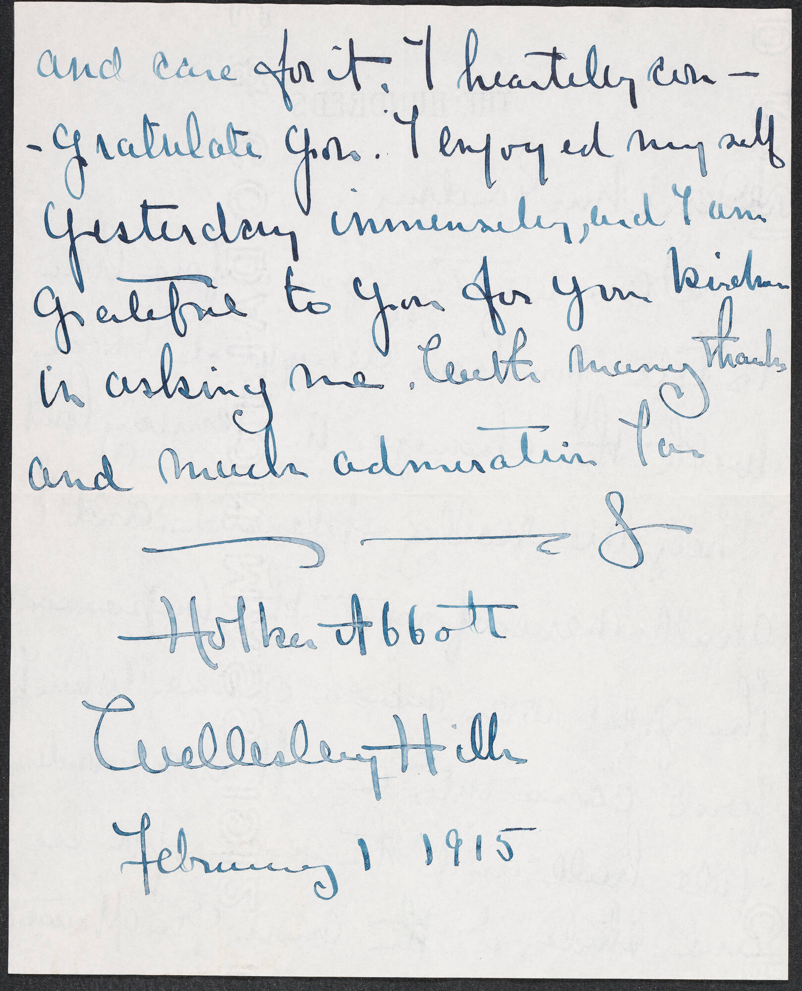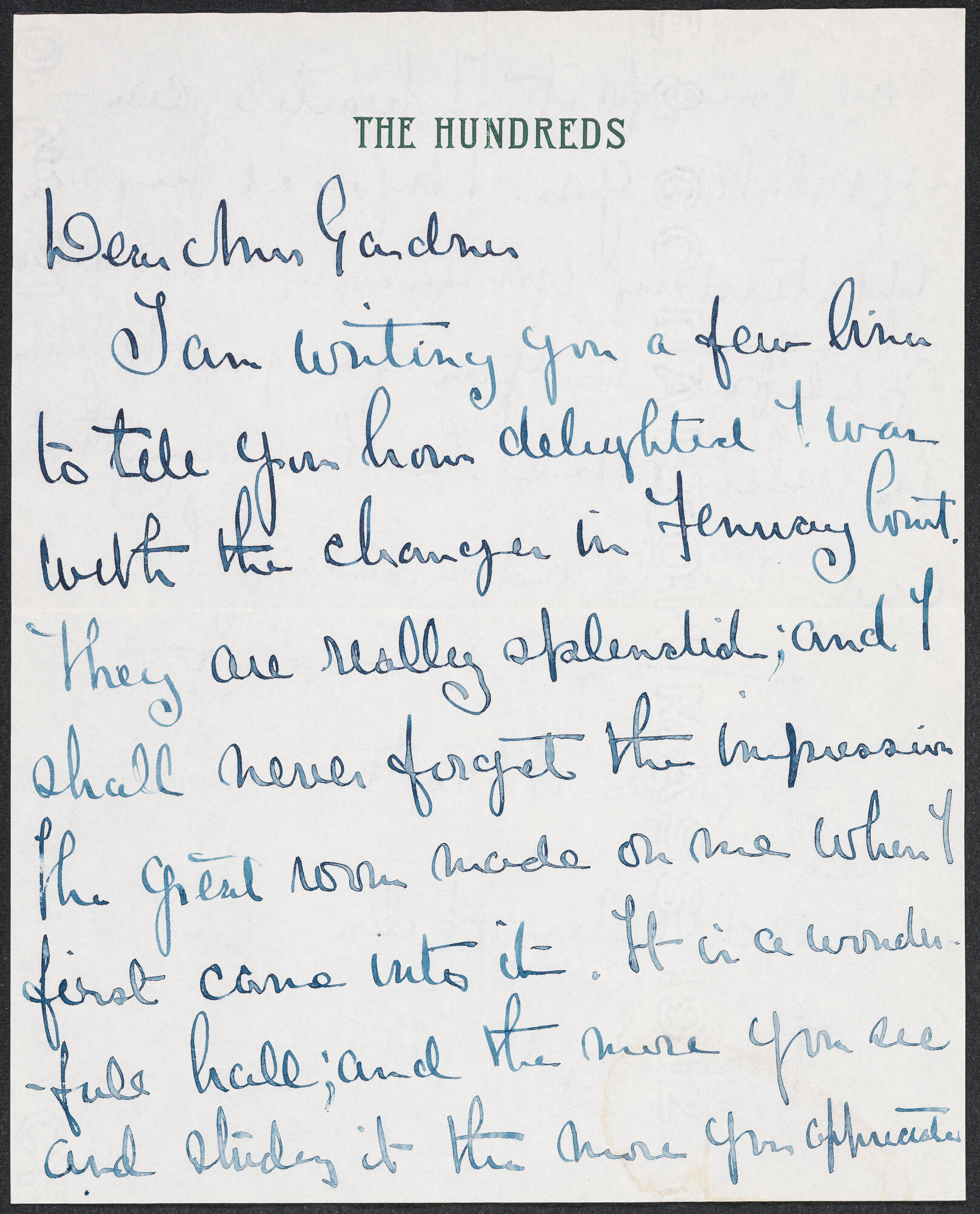 Letter to Isabella Stewart Gardner from Wellesley Hills, Wellesley, Massachusetts