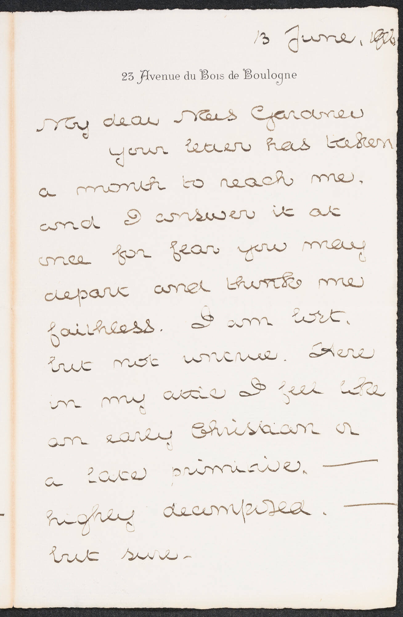 Letter to Isabella Stewart Gardner from 23 Avenue du Bois de Boulogne, Paris