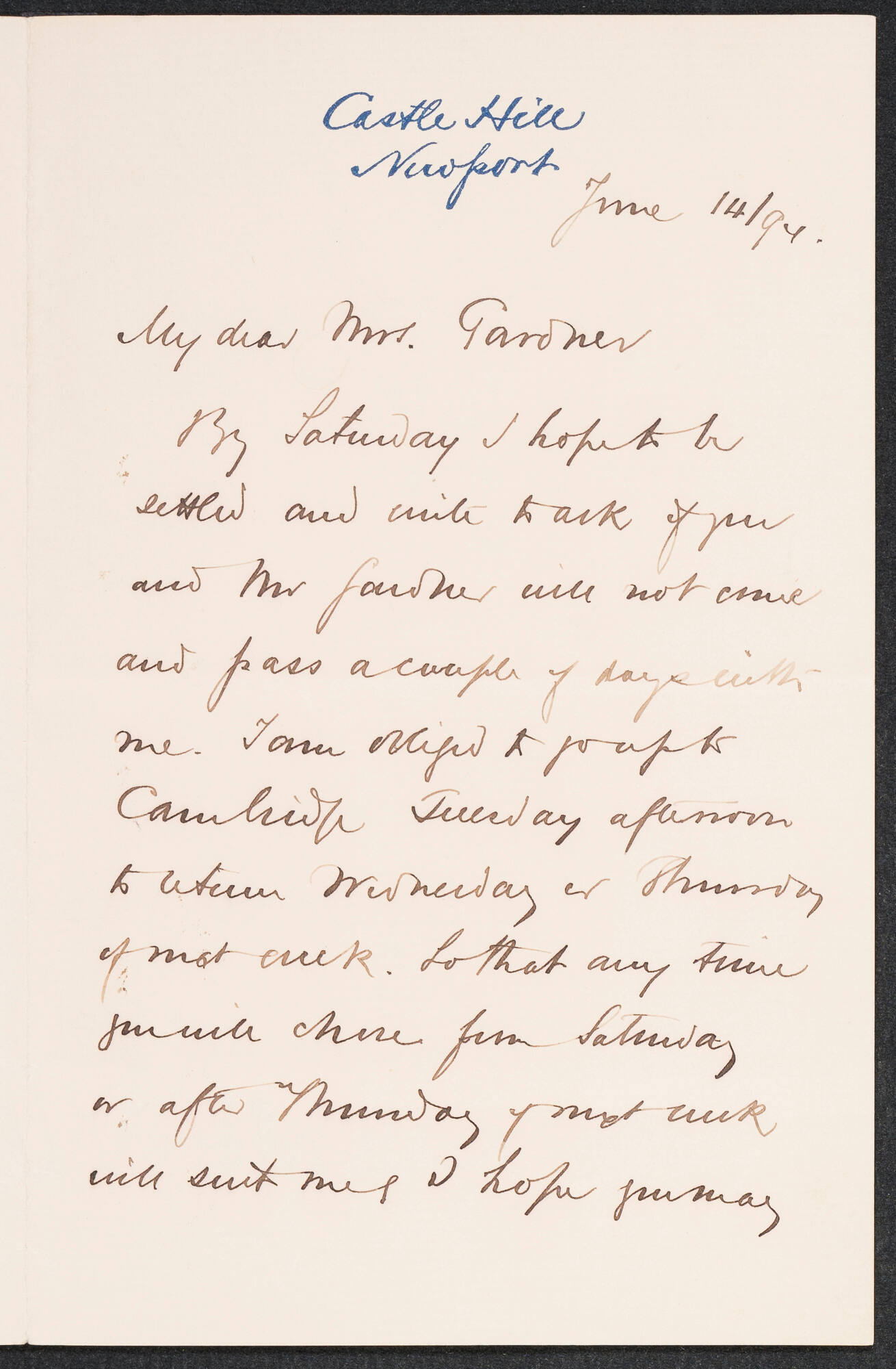 Letter to Isabella Stewart Gardner from Castle Hill, Newport, 14 June 1894