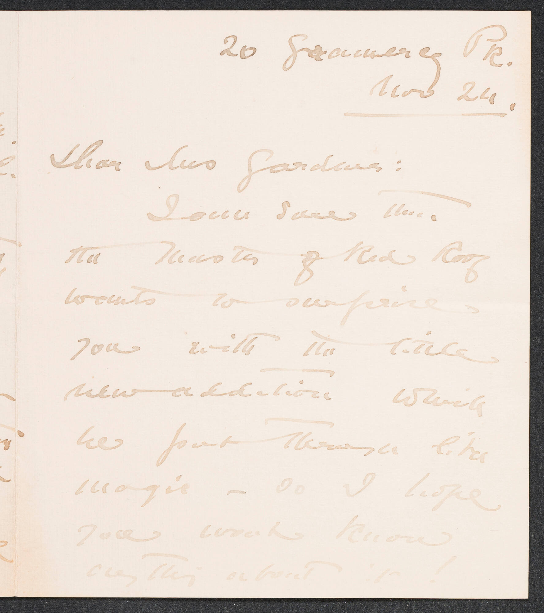 Letter to Isabella Stewart Gardner from 20 Gramercy Park