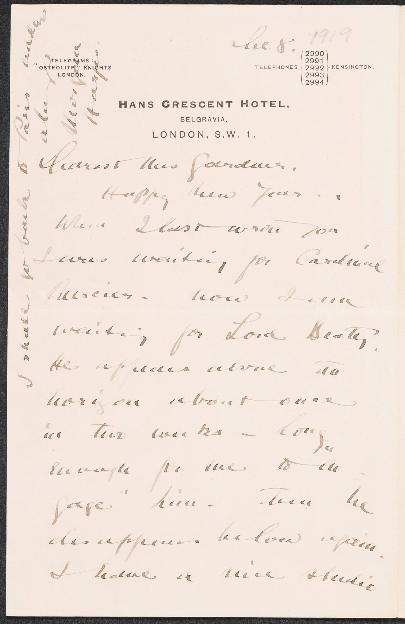 Letter to Isabella Stewart Gardner from Hans Crescent Hotel, London