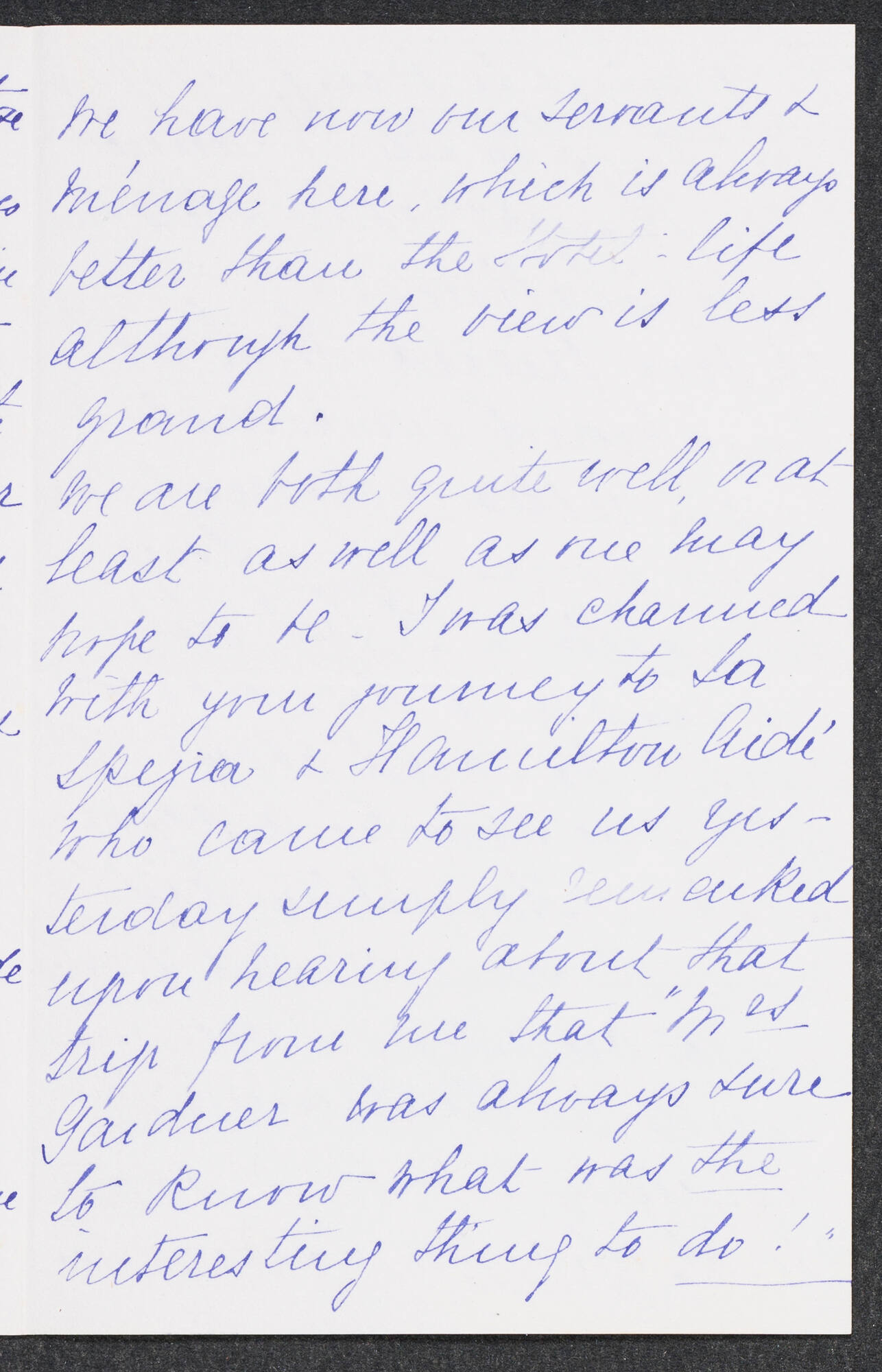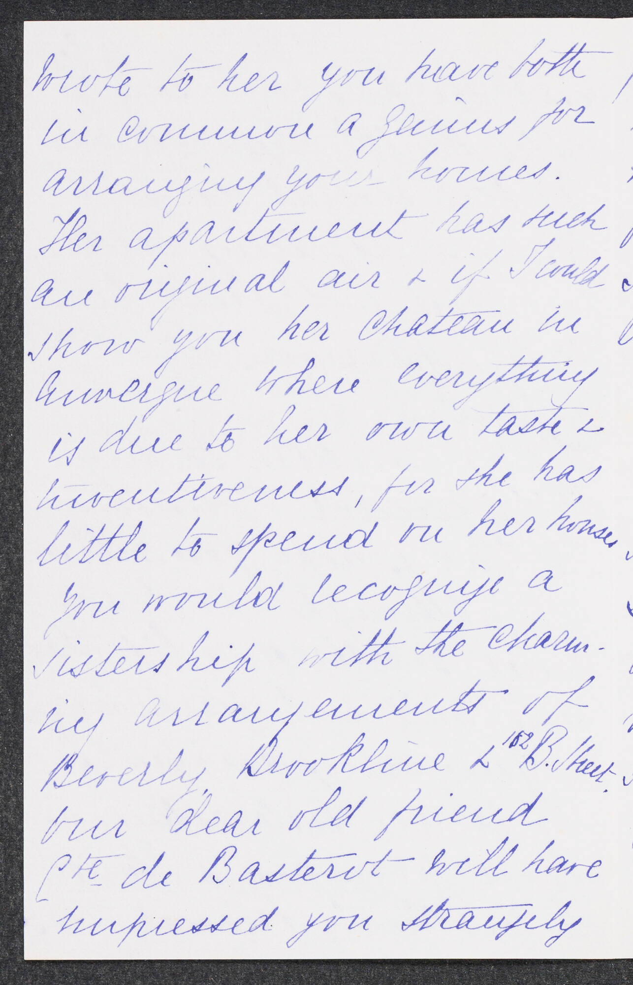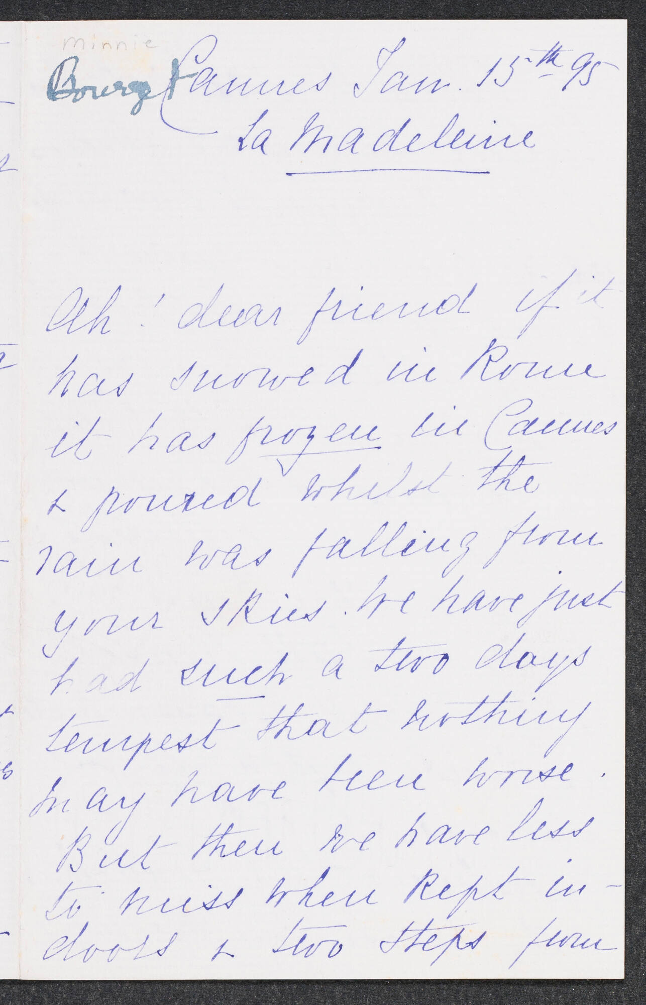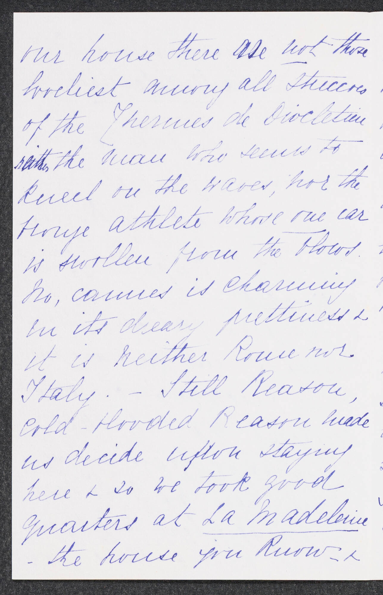 Letter to Isabella Stewart Gardner from La Madeleine, Cannes, France