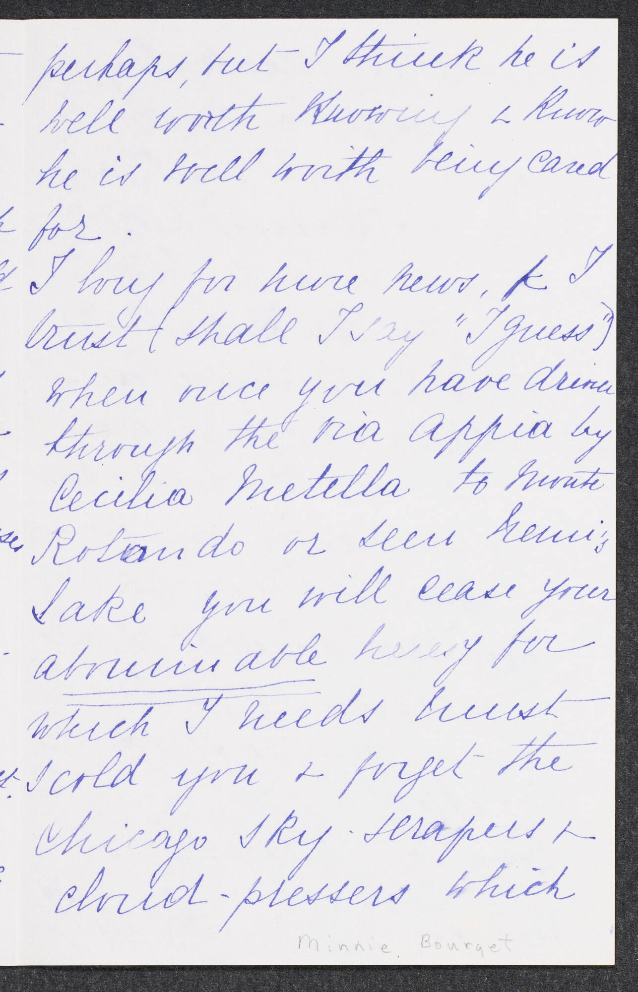 Inscribed in pencil (upper left corner): MInnie / Bourget