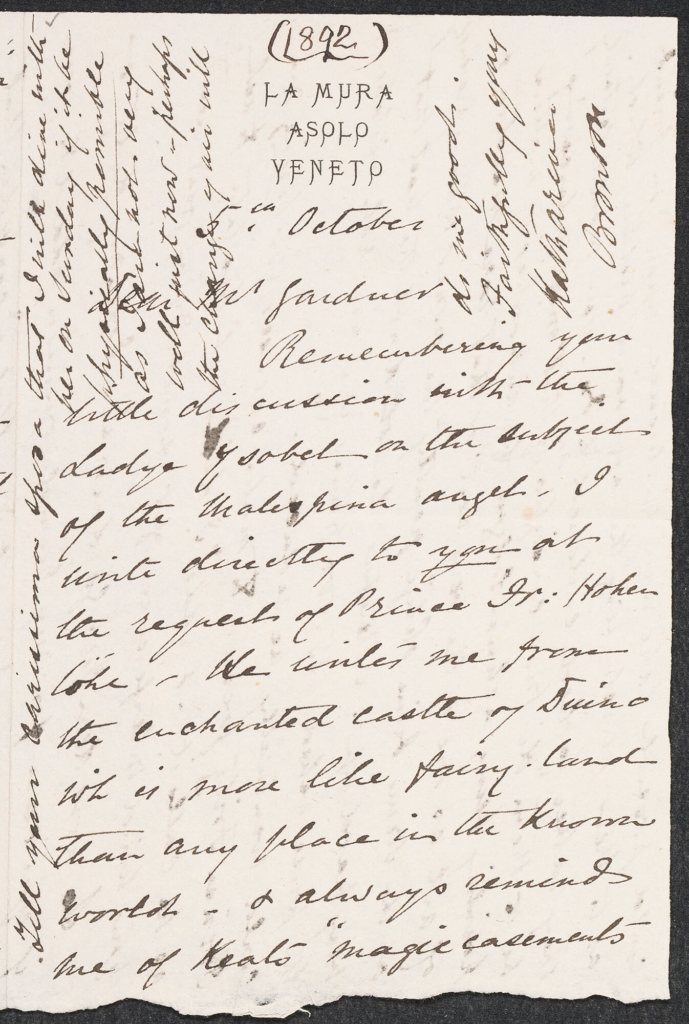 Letter to Isabella Stewart Gardner from La Mura, Asolo, Italy