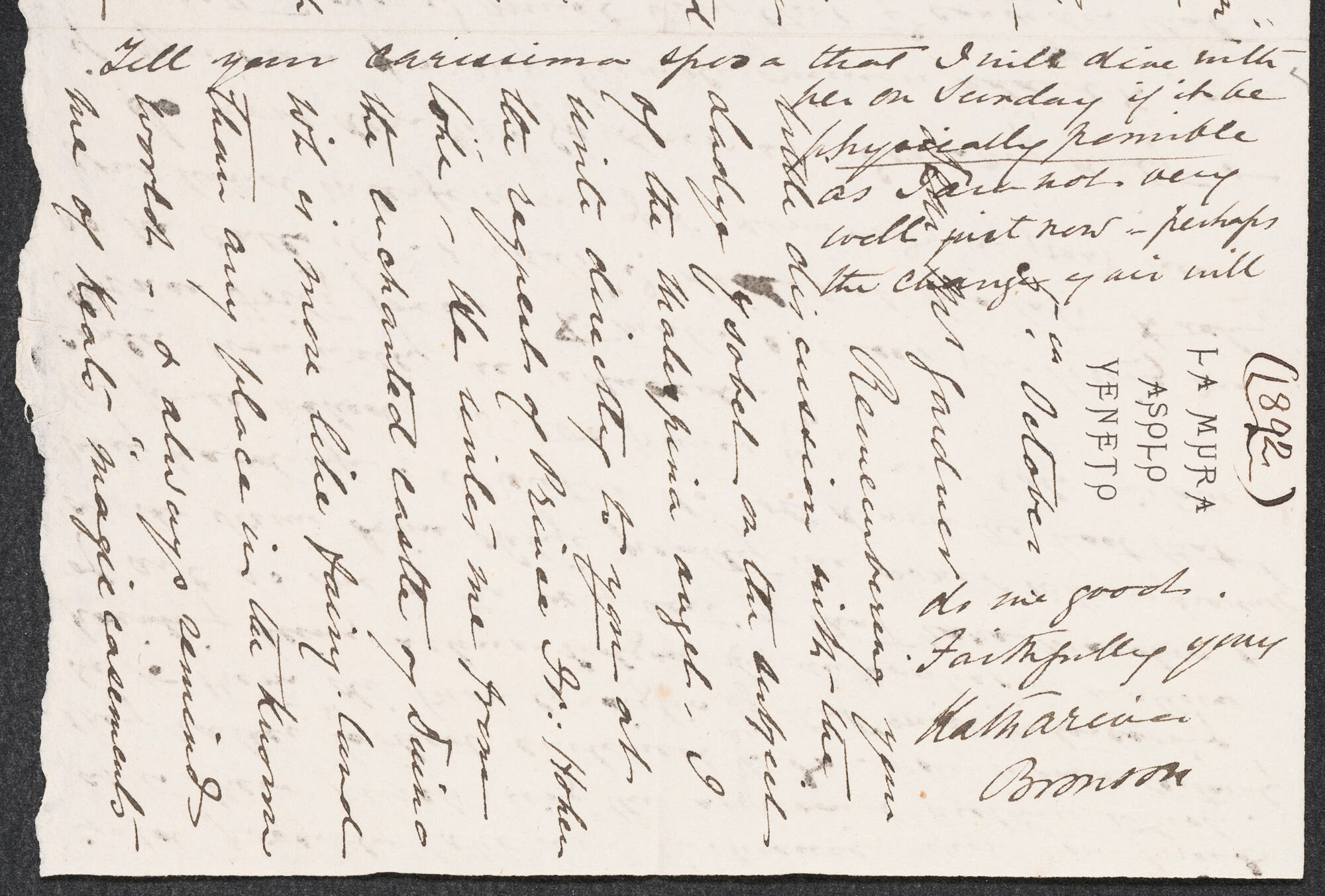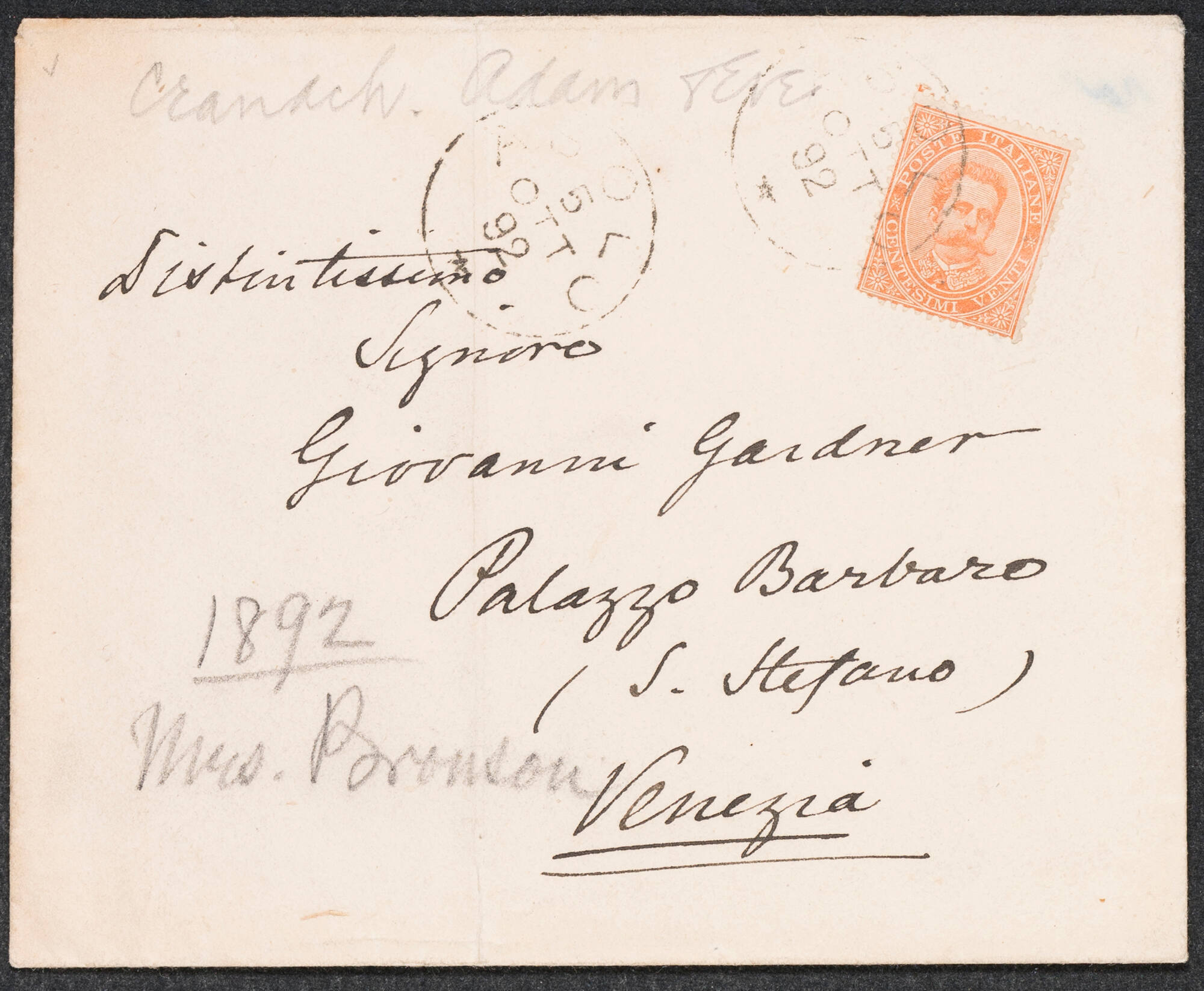 Inscribed in pencil (recto of envelope, bottom left): 1892 / Mrs. Bronson
