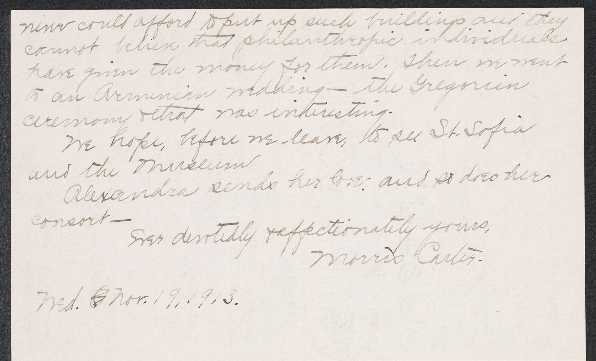 Letter to Isabella Stewart Gardner from Istanbul, Turkey [Constantinople]