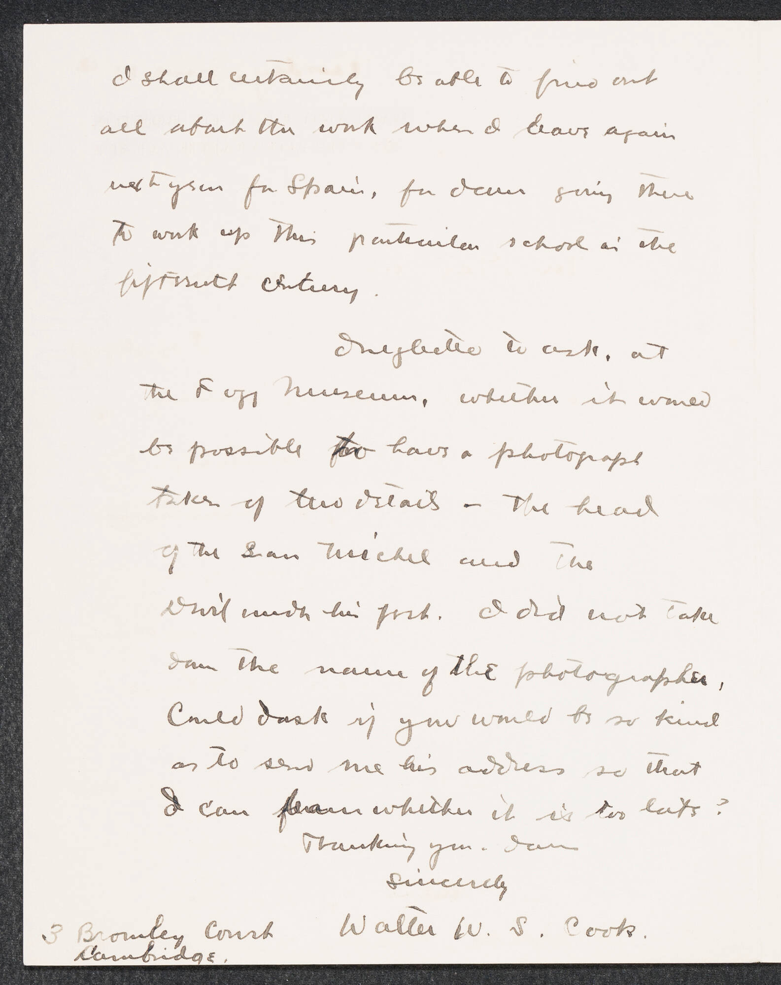 Letter to Isabella Stewart Gardner from 3 Bromley Court, Cambridge, Massachusetts