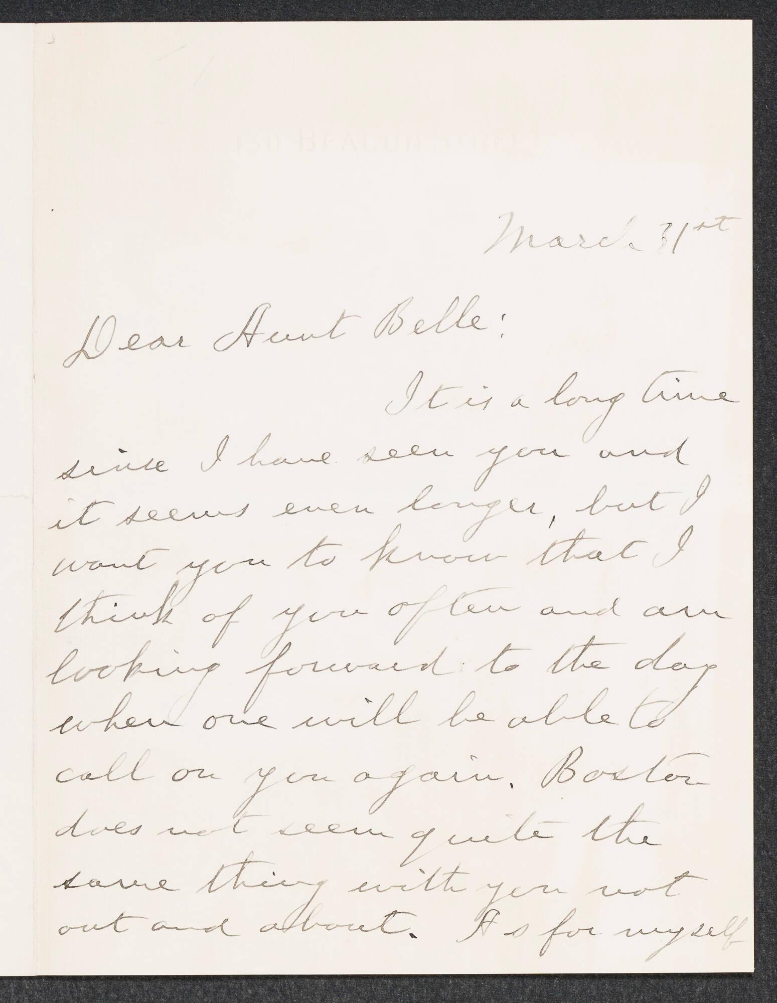 Letter to Isabella Stewart Gardner from 130 Beacon Street, Boston