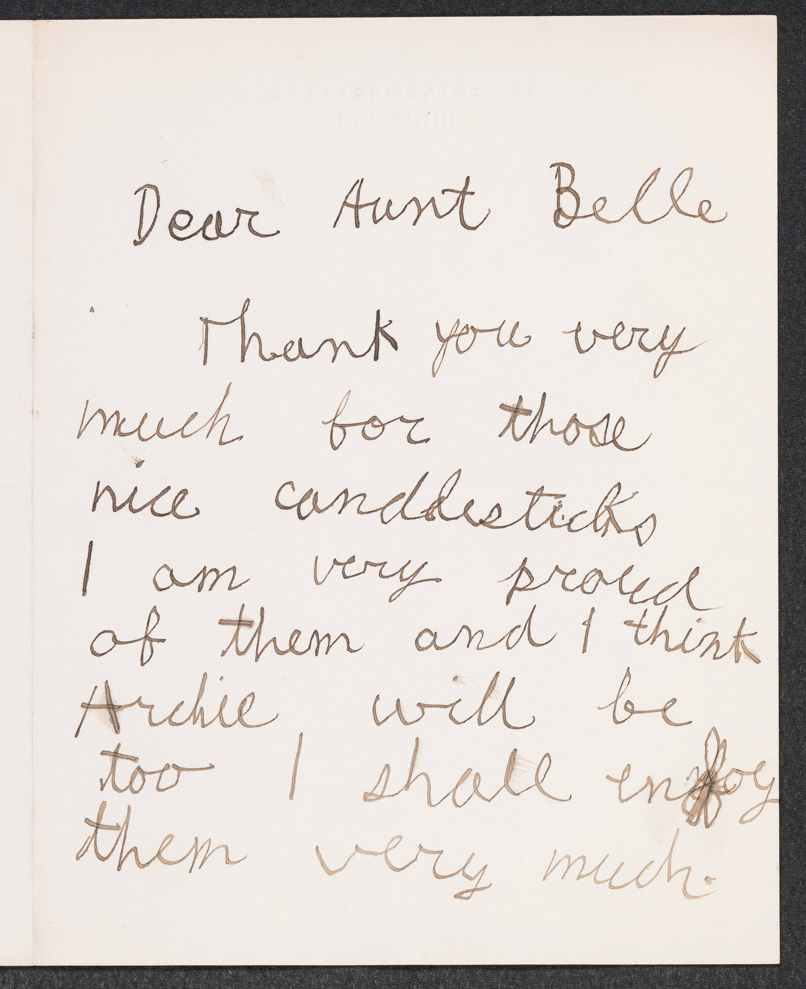 Stationery stamped: 27 Fayerweather St. / Cambridge