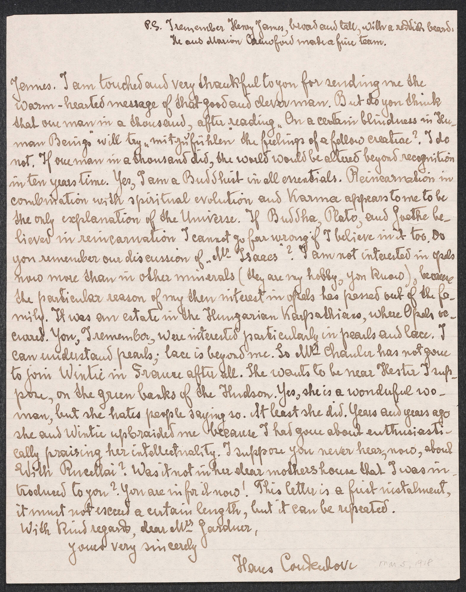 Inscribed in pencil (recto of envelope, upper right): Coudenhove