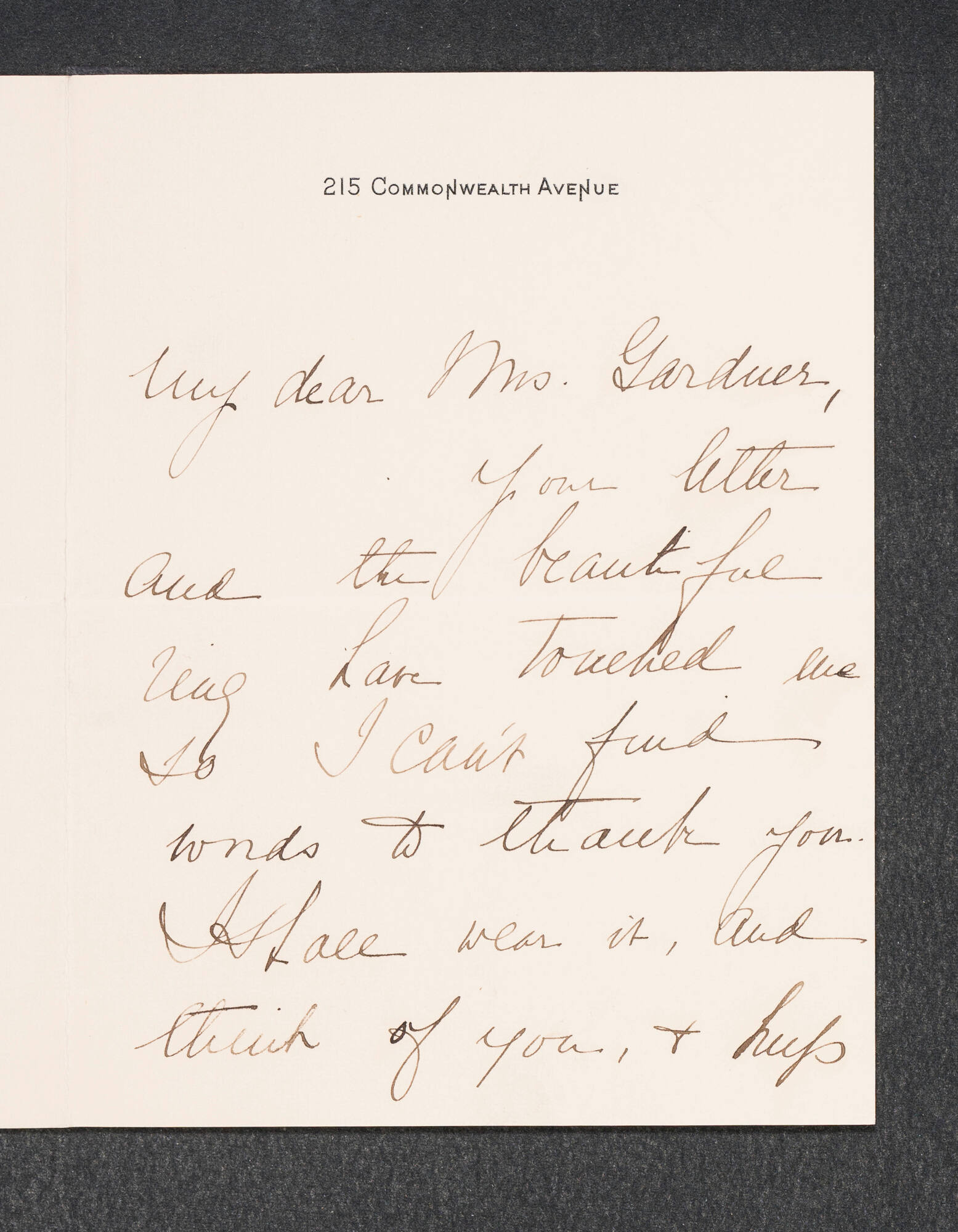 Letter to Isabella Stewart Gardner from 215 Commonwealth Avenue, Boston