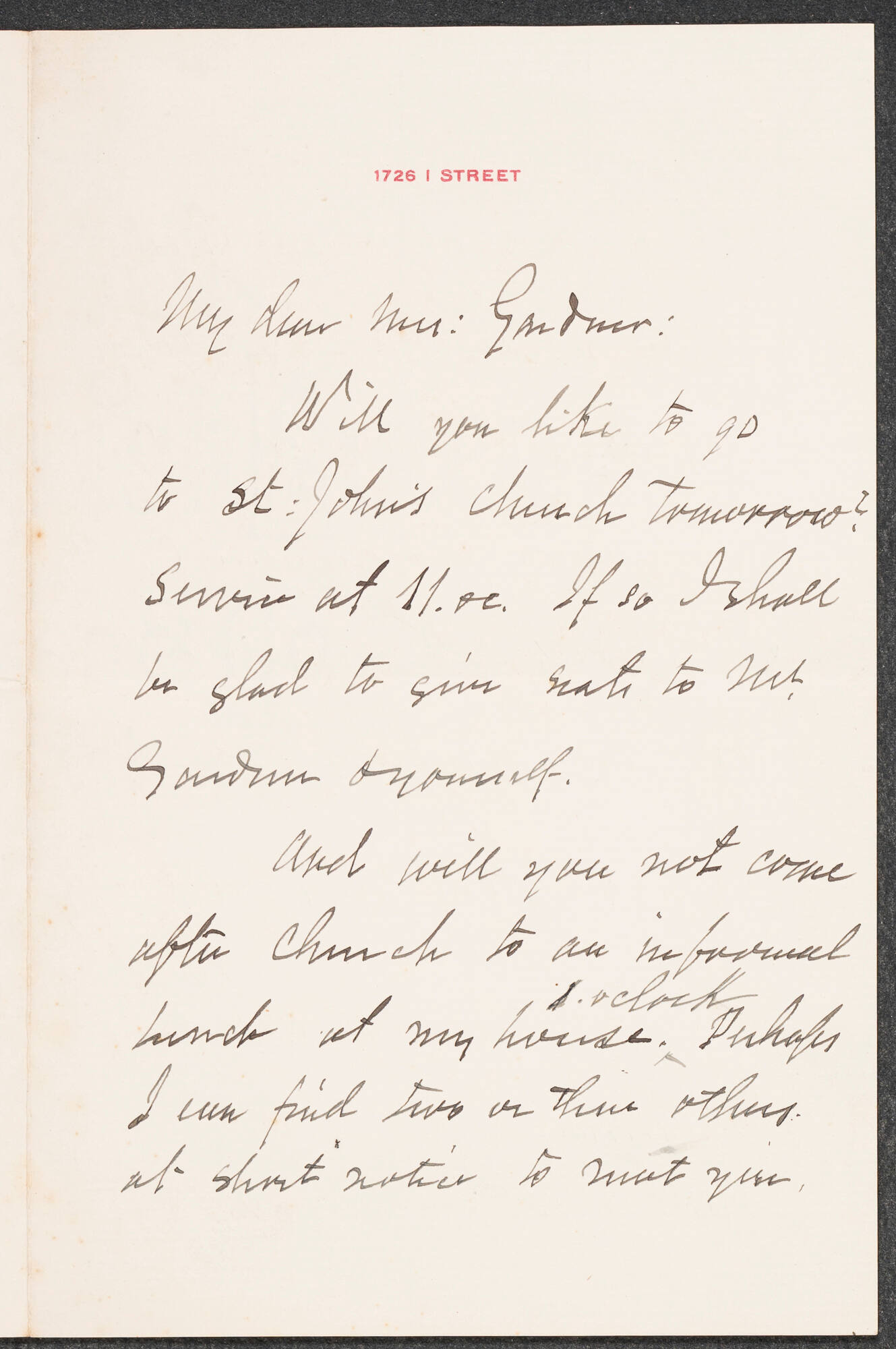 Letter to Isabella Stewart Gardner from 1726 I Street, Washington, D.C.