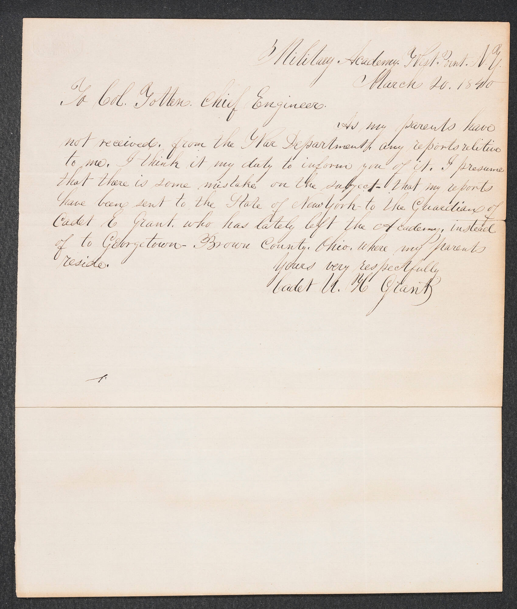 Letter to Colonel Joseph Gilbert Totten from West Point, New York