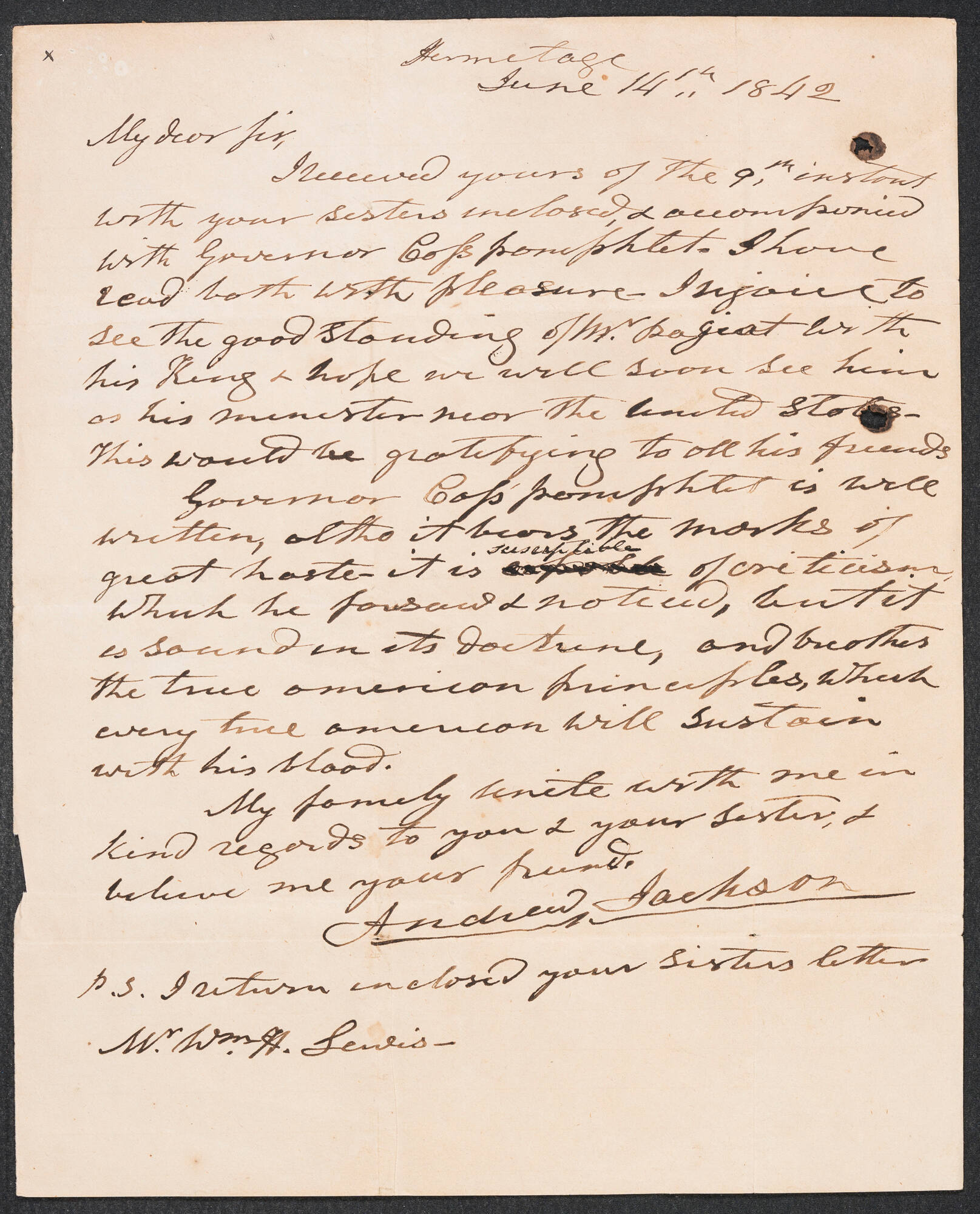 Letter to WIlliam B. Lewis from the Hermitage, Nashville, Tennessee