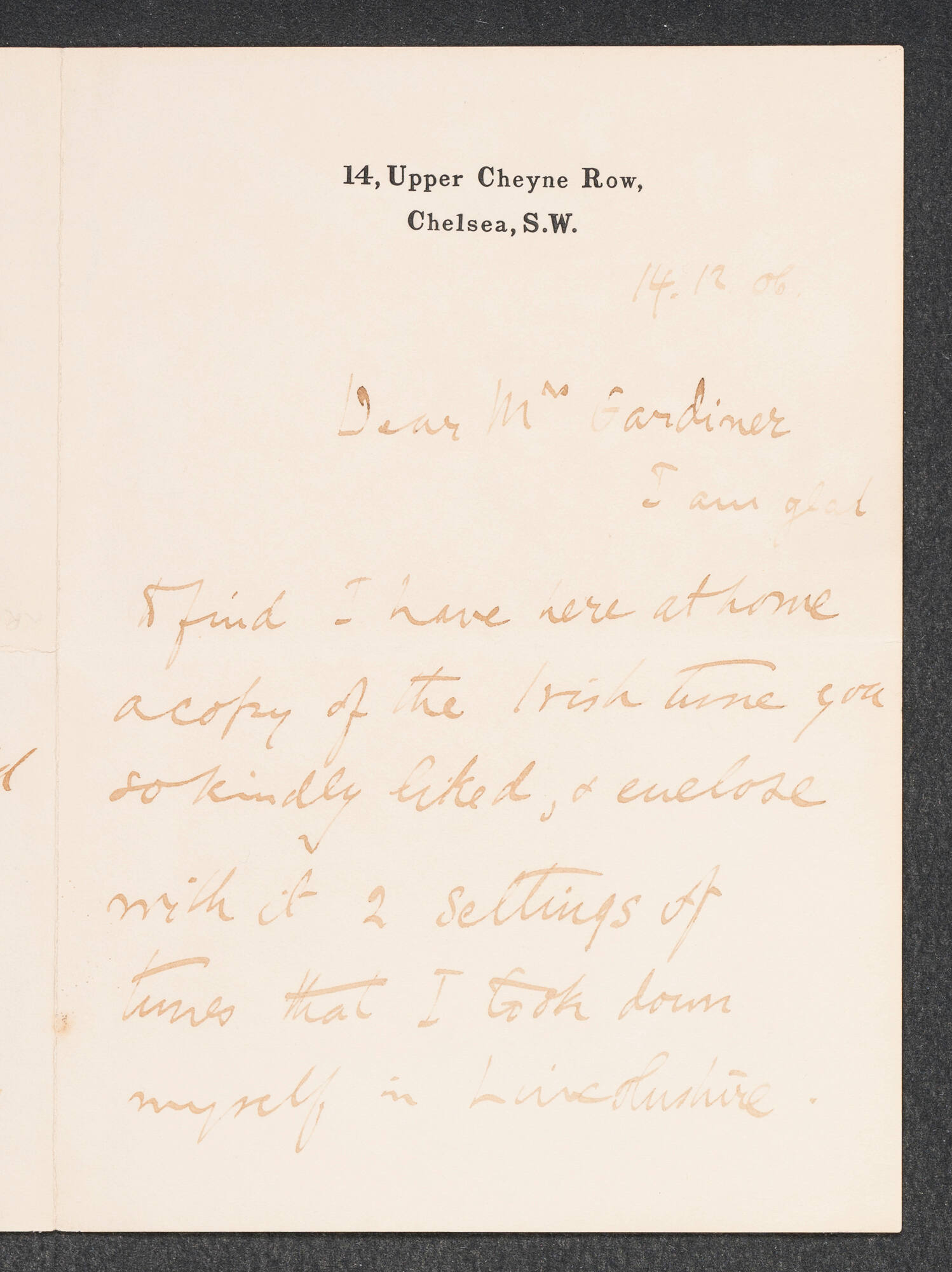 Percy Grainger - Letter to Isabella Stewart Gardner from London, 14 December 1906