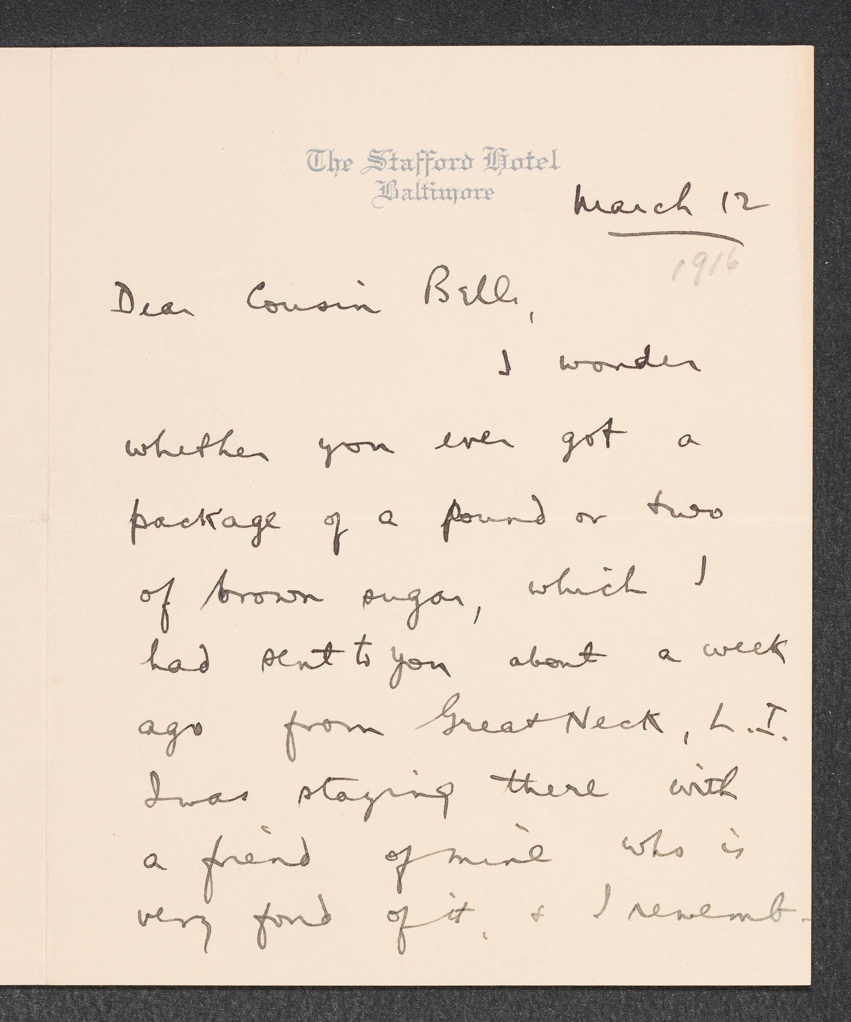 Letter to Isabella Stewart Gardner from the Stafford Hotel, Baltimore