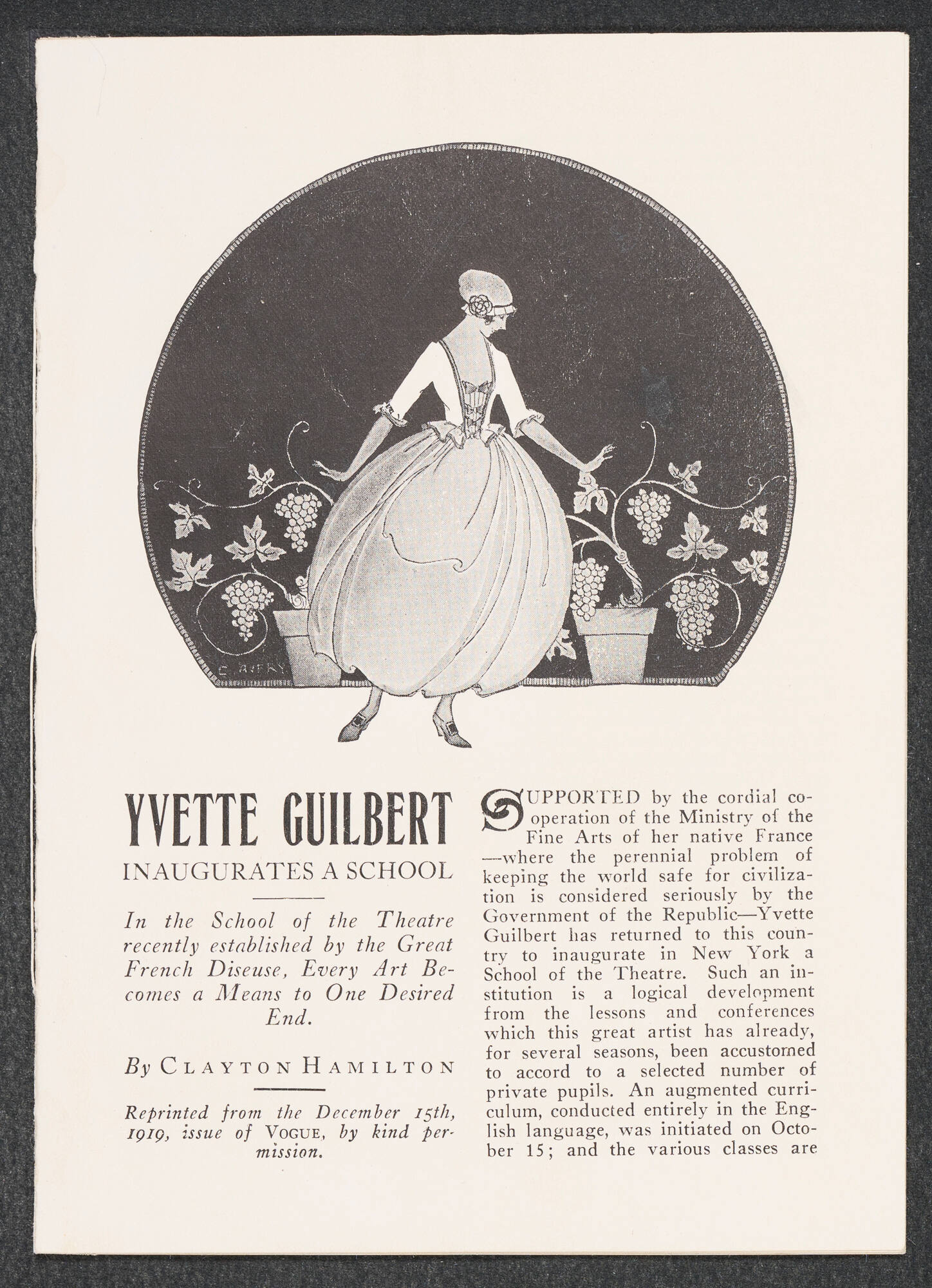 Clayton Hamilton. "Yvette Guilbert Inaugurates A School." Vogue (December 15, 1919).