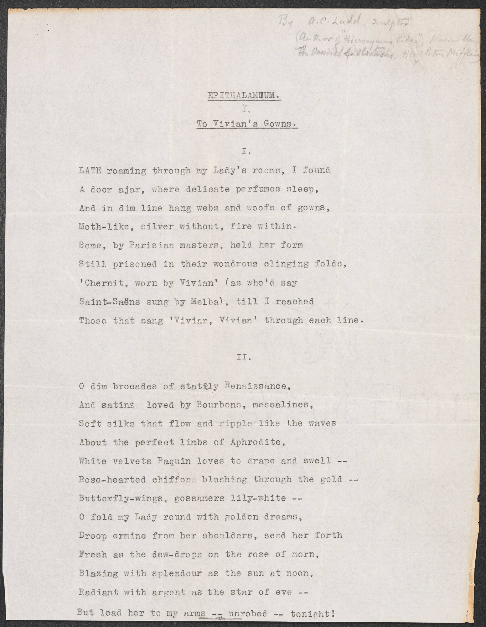 Epithalamium I, late 19th century - early 20th century