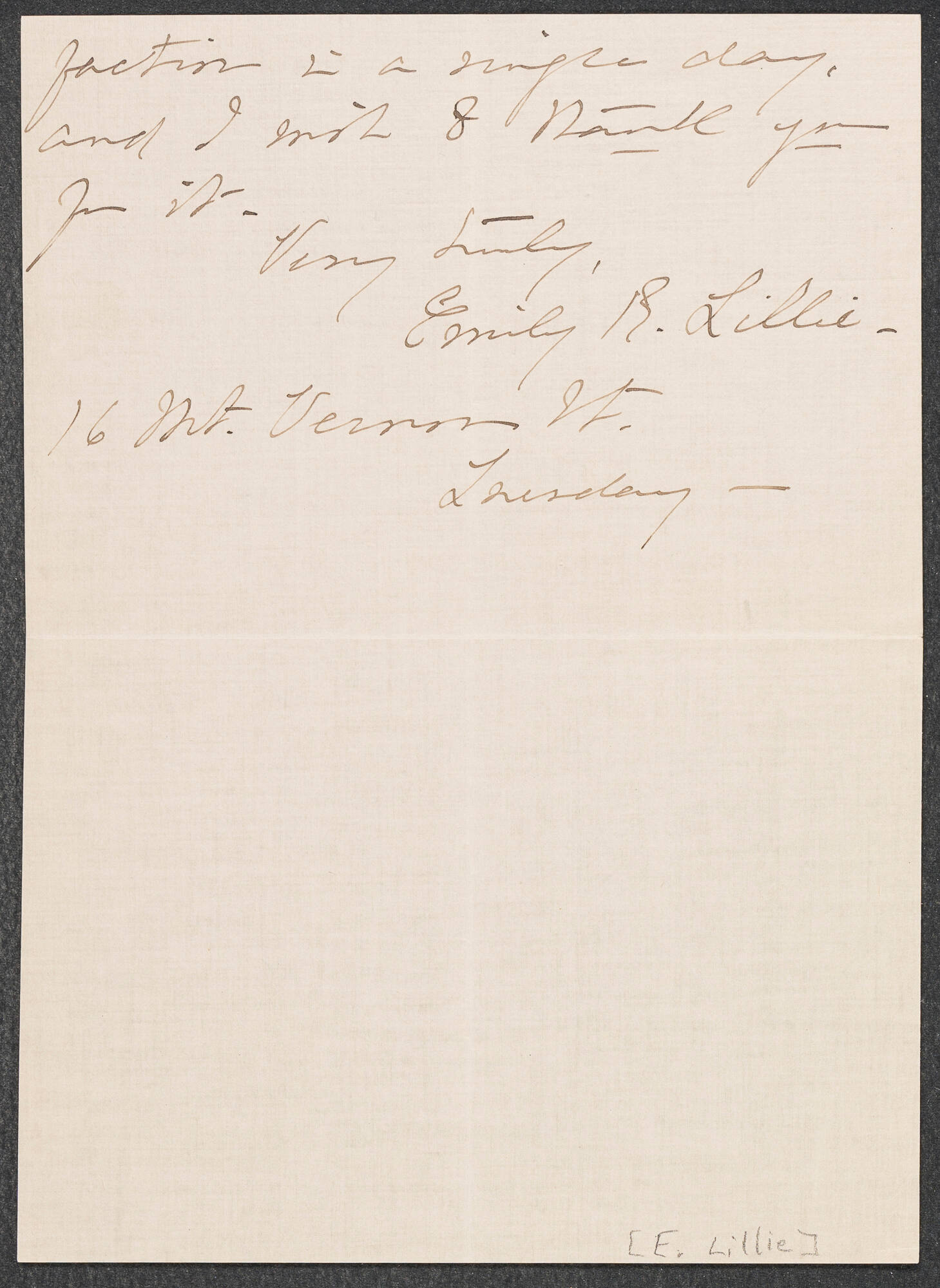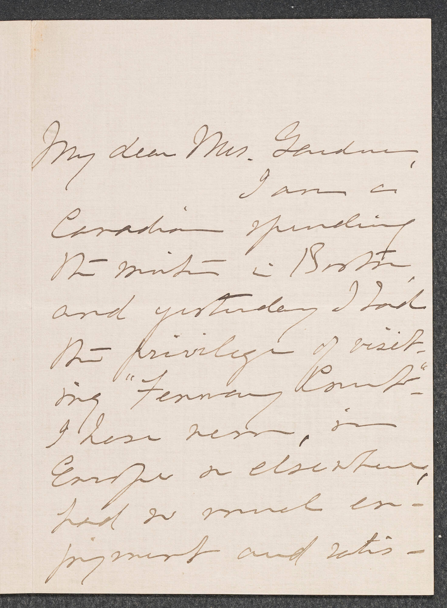 Letter to Isabella Stewart Gardner from 16 Mount Vernon St, Boston