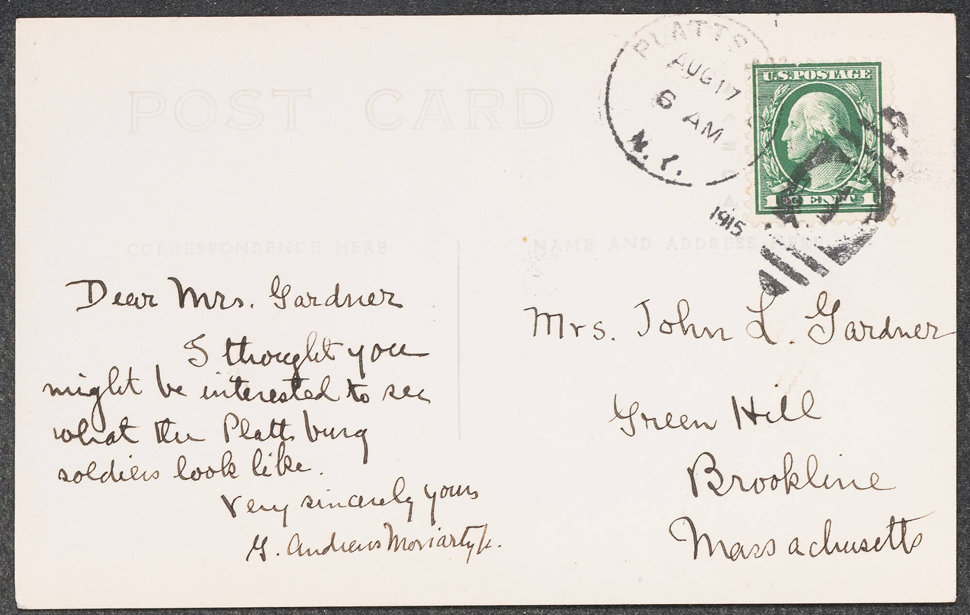 Postcard to Isabella Stewart Gardner from Platssburg, New York
